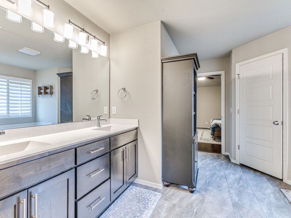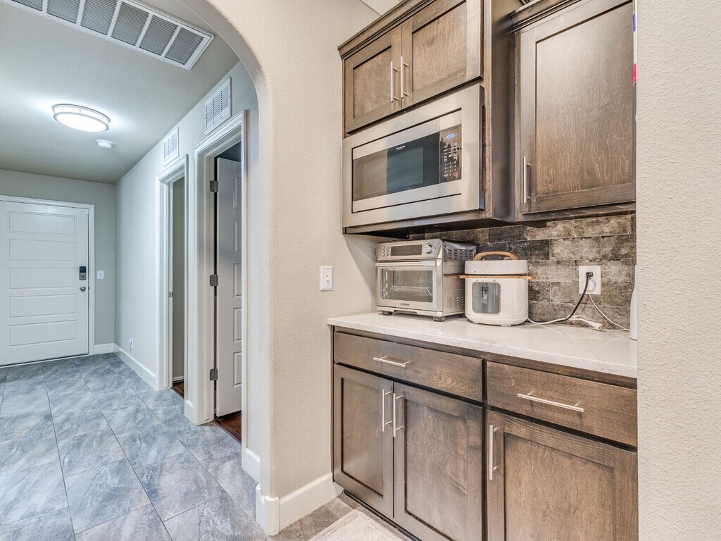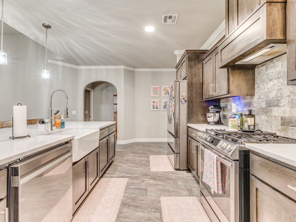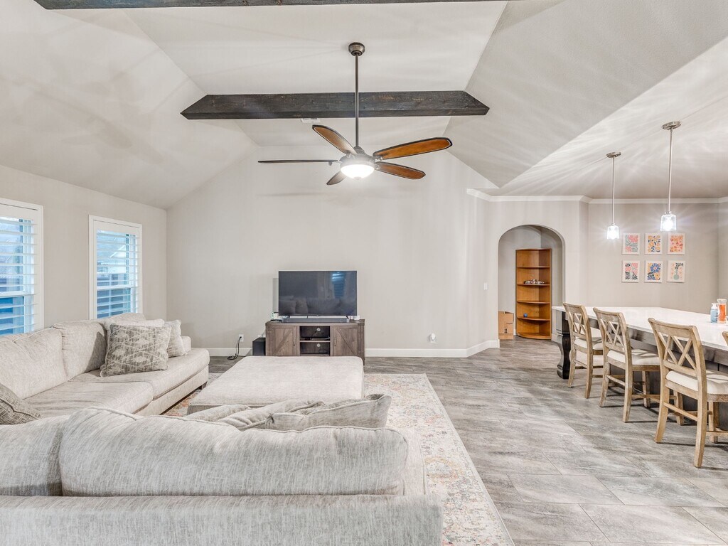 4-bed, 2.5-bath, 3-car garage single-story on a corner lot in Spring Creek. | Great floor plan with 4th bed used as office. | Upgrades include epoxy garage floors, water softener, solar panels, plantation shutters, crown molding, custom lighting, engineered wood floors, and drop zone. | Tinted windows, and quartz kitchen counters. | Refrigerator, gas stove, dishwasher, washer & dryer all stay. | Community pool. | Close to new Reasor’s, Warren Theater, shopping, and Creek Turnpike.Property will be unfurnished.