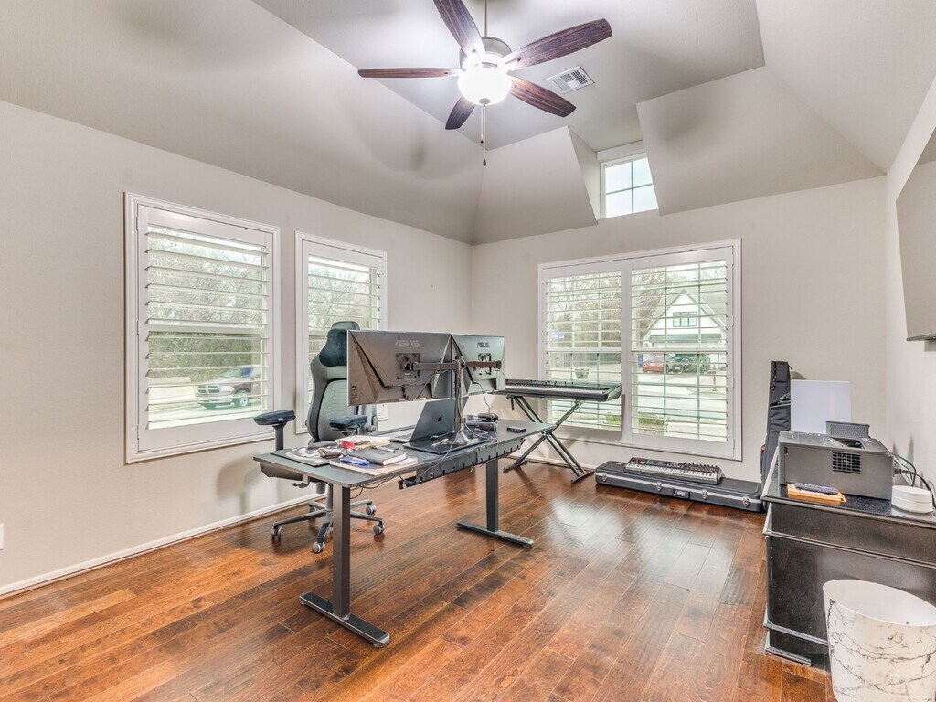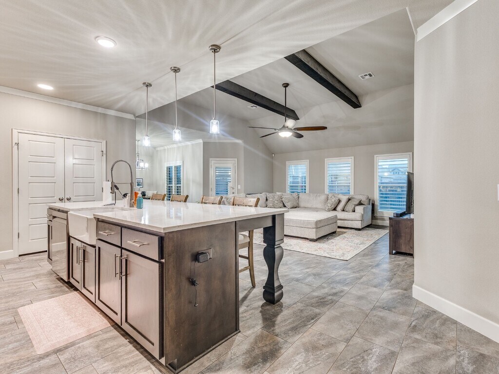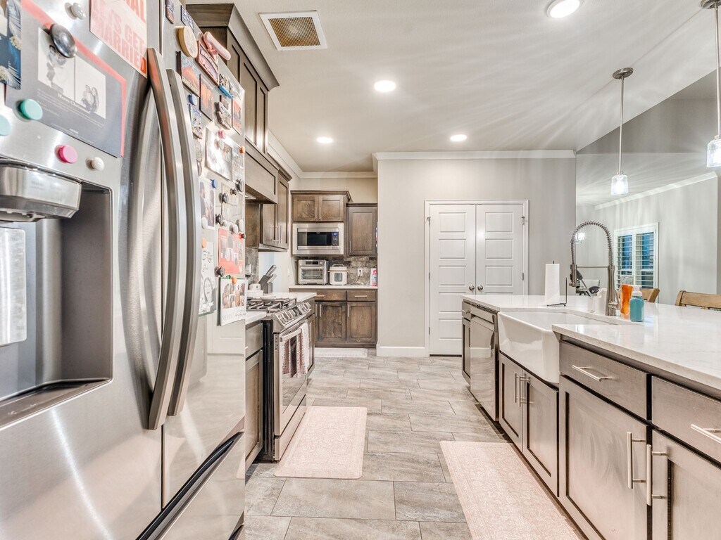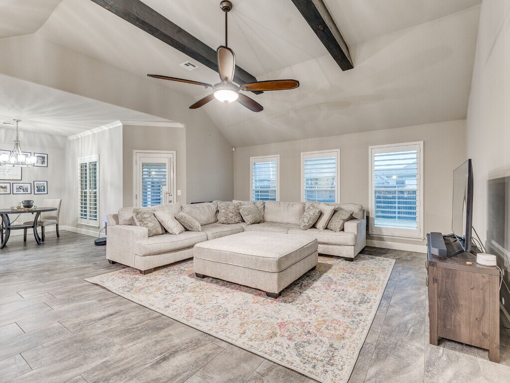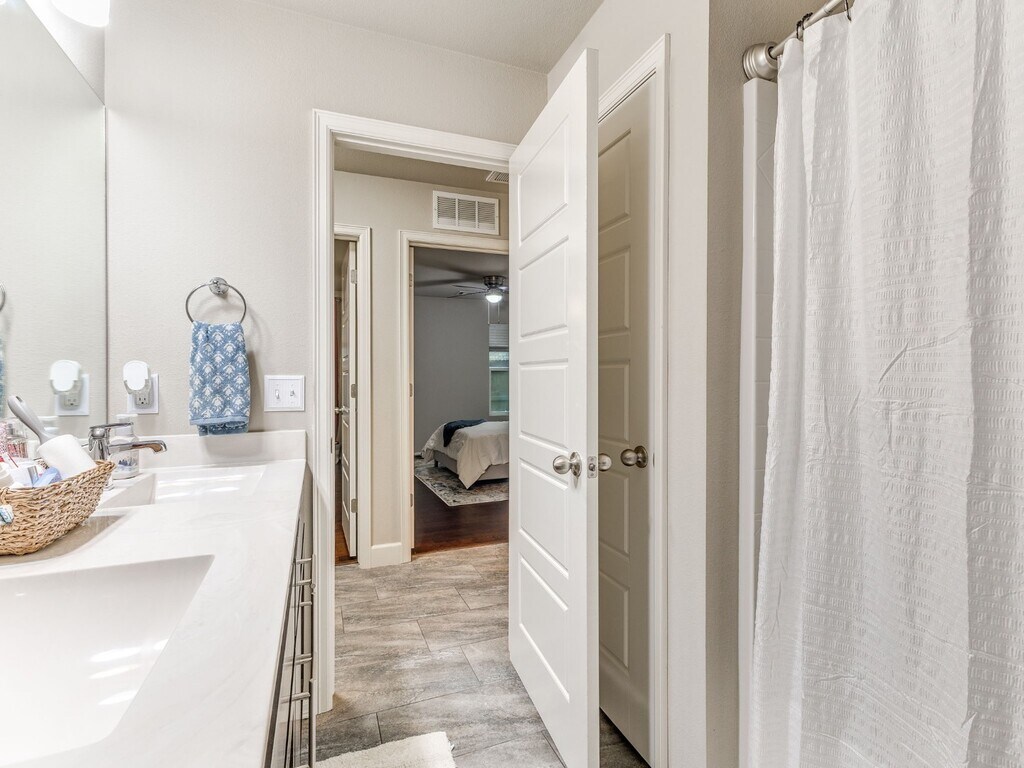 4-bed, 2.5-bath, 3-car garage single-story on a corner lot in Spring Creek. | Great floor plan with 4th bed used as office. | Upgrades include epoxy garage floors, water softener, solar panels, plantation shutters, crown molding, custom lighting, engineered wood floors, and drop zone. | Tinted windows, and quartz kitchen counters. | Refrigerator, gas stove, dishwasher, washer & dryer all stay. | Community pool. | Close to new Reasor’s, Warren Theater, shopping, and Creek Turnpike.Property will be unfurnished.
