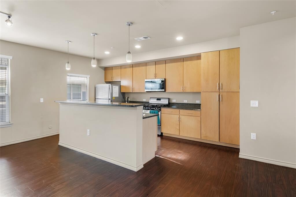 Modern three-story townhome in the heart of South Austin, thoughtfully designed for both everyday living and elevated entertaining. This two-bedroom, two-and-a-half-bath residence features a clean, contemporary aesthetic with an attached two-car garage and a striking floating staircase that anchors the interior. The main living level is open and inviting, highlighted by a sleek fireplace and seamless flow between the kitchen, dining, and living spaces. Large windows bring in abundant natural light, enhancing the modern lines and finishes throughout. The primary and secondary bedrooms offer privacy and comfort, while the home’s true showpiece awaits above—a private rooftop deck with downtown Austin views. With ample space to host, lounge, or unwind, it’s an ideal setting for sunset gatherings, weekend entertaining, or quiet evenings overlooking the city skyline. Ideally located near South Congress and South First, this home places you moments from some of Austin’s most beloved local spots, including Toss Pizzeria, Phoebe’s Diner, Kelly’s Irish Pub, HEB, and more. A rare opportunity to enjoy modern design, outdoor living, and a walkable South Austin lifestyle all in one. MLS ID 9453321