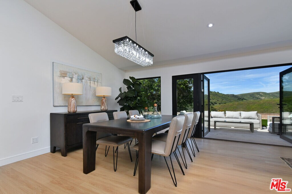 Located on a quiet cul-de-sac in prime Calabasas, this newly renovated showplace offers approximately 2,300 square feet of thoughtfully designed living space, featuring 4 bedrooms, 3.5 bathrooms, and a very rare detached ADU ideal for guests, a private office, or rental income. An impressive blend of modern luxury and quintessential California indoor-outdoor living, the home is filled with natural light and elevated finishes throughout. The showpiece gourmet chef's kitchen has been beautifully remodeled with a large center island, quartz countertops, custom cabinetry, designer pendant lighting, and brand-new top-tier stainless steel appliances. The kitchen flows seamlessly into the dining area and spacious family room, highlighted by a vaulted ceiling, chic fireplace, and walls of glass. French doors open to the rear patio, creating effortless indoor-outdoor entertaining. The luxurious primary suite is a true retreat, complete with a spa-inspired, Four Seasons-style bath, walk-in closet, private outdoor sitting area, and breathtaking hilltop views. Three additional bedrooms offer generous space and comfort for family or guests. Additional upgrades include a new roof, new windows, gleaming wood-style flooring, and direct access to the two-car garage delivering a turnkey experience with thoughtful improvements at every turn. The one-of-a-kind backyard oasis showcases explosive mountain views, a park-like turf area, and multiple seating and entertaining spaces designed for year-round enjoyment. Conveniently located near premier shopping, dining, parks, hiking trails, beaches, and award-winning schools, this exceptional property offers the perfect balance of privacy, style, and location. MLS# 26661301