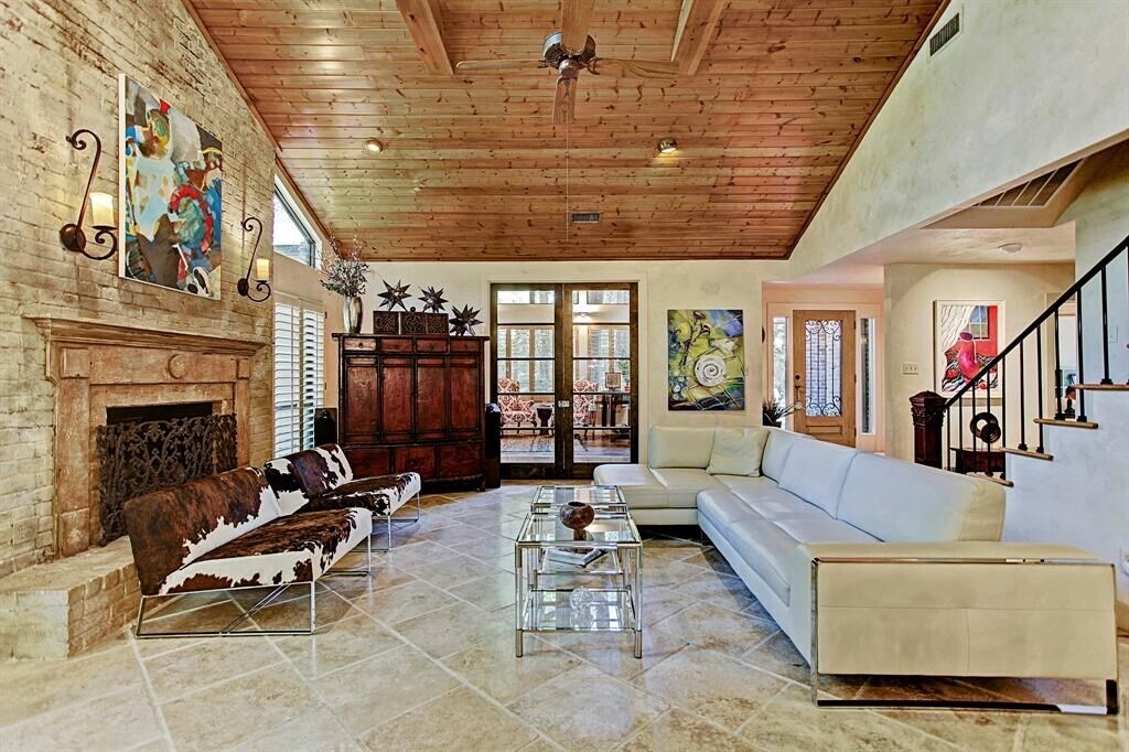 Gorgeous custom home in a desirable "up front" location in the Village of Grogan's Mill. Concrete stucco and brick exterior,travertine tile,hardwoods,and stained concrete flooring inside. Designer kitchen with honed travertine and concrete counters,Viking appliances,butler's pantry/wet bar w/ice maker & beverage fridge,spacious sun room,study,and a fabulous backyard for entertaining. Whole house water filtration system. Close to dining,shopping & entertainment in Town Center,Market Street,Hughes Landing,and Waterway. Trails,nature reserve,and golf course nearby. MLS# 38658781
