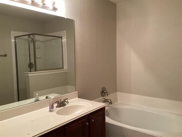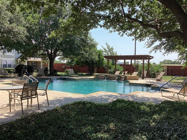 Immaculate 3 bedroom, 2.5 bath, 2 story condo located in a private Bedford community. This peaceful, quiet community features a community pool, ample green space, fountains, gazebos and multiple sitting areas. Excellent location to shopping and DFW airport. Living area has new luxury vinyl plank and opens to the large kitchen, with tons of counter and storage space. All bedrooms and the laundry room are upstairs. Primary bedroom features dual closets and an attached en-suite bathroom. Separate shower and tub in primary bath. Large guest bedrooms with ceiling fans. 2 car attached garage.
