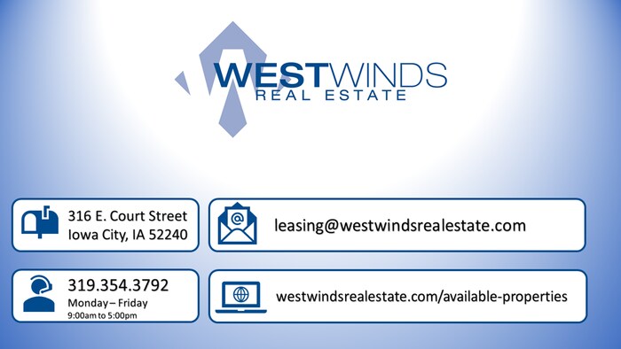 This Apartment is Available August 1st, 2026 Copy this link to your browser to schedule a showing at your convenience. 2 Bedroom, 1 Bathroom apartment in Iowa City. This 2nd floor unit features hardwood floors in the living room and bedrooms. The kitchen includes gas range and plenty of cabinetry space. Bedrooms feature large closets. Shared laundry and additional individual storage space in lower level. You'll love the terrace that connects the buildings together! Nearby grocery, shopping, restaurants, parks, bus lines, and more! Quick access to i80! Included in Rent * Garbage * Lawn Care * Snow Removal * Off Street Parking Available - (Parking Lot | 1st Come, 1st Serve) Utilities Not Included - Tenant Responsibilities - Electricity & Gas: MidAmerican - Water: City of Iowa City Additional Disclaimers *Photos/Floor Plans May be of a similar unit *Cat(s) Allowed for additional monthly fee(s) (Pet Limitations May Apply) Please visit our website for additional rental properties, for application details, schedule showings, and much more! Contact us to schedule a showing.