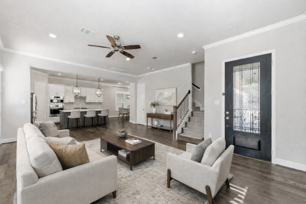 Where timeless design meets modern ease—this Heights home is anything but ordinary. With first-floor living,a private drive,and direct access to the Hike & Bike Trail,every detail has been curated for comfort and style. Think classic marble touches,designer lighting,custom cabinetry with premium soft-close hinges,and thoughtful extras like floor plugs,smart seasonal exterior lights,and a full suite of included appliances—including a wine fridge. The kitchen and baths shine with extra drawer stacks and quartz counters,while the first-floor office and glass-enclosed game room upstairs add flexibility. Step outside to your extended patio and relax under the breeze of the gently whirling ceiling fan. Smart systems like Ecobee,Rainbird irrigation,and security cameras make daily life effortlessly elevated. Pet-friendly and packed with personality—this home is ready to wow. MLS# 43386228