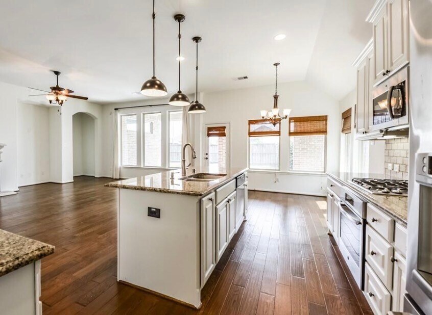 Beautiful one-story,brick home,updated and move-in ready for lease. This home features wood flooring throughout,including the primary suite and front extra room,while two additional bedrooms have carpet. Enjoy an open-concept layout with architectural arches and a stone fireplace. The kitchen features a center island with granite countertops,stainless steel appliances,gas cooktop,and includes a refrigerator. A formal dining room includes a butler’s pantry. The spacious primary suite offers a flex space ideal for an office,nursery,or sitting area. The en-suite bath includes dual vanities,soaking tub,a separate shower,and a large walk-in closet. A versatile fourth room can be used as a guest room,game room,office,or flex space. The backyard features a covered patio perfect for outdoor entertaining. MLS# 2250172