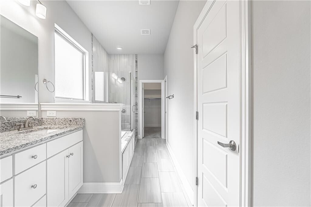 Welcome to this stunning 3-bedroom, 2-bathroom home located in the vibrant city of Bentonville, AR. This property boasts a spacious open floor plan, beautifully complemented by gleaming hardwood floors. The chef's kitchen is a culinary dream, featuring a large island, a pantry, a gas stove, and sparkling white cabinets. The formal dining area adds a touch of elegance, perfect for hosting dinner parties or enjoying a family meal. The living area is warmed by a gas log fireplace, creating a cozy atmosphere during cooler months. The master bath is a haven of luxury with dual vanities and a jacuzzi garden tub. The home also includes a 2-car garage for secure parking and additional storage. Step outside to a covered back porch overlooking a fenced backyard, offering a private outdoor space for relaxation or entertainment. This home is a perfect blend of style, comfort, and convenience. MLS# 1325814
