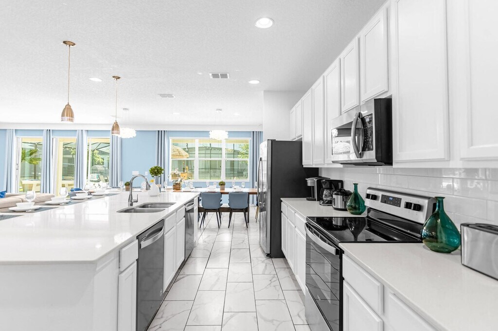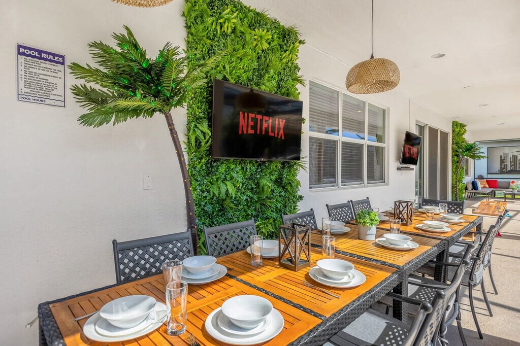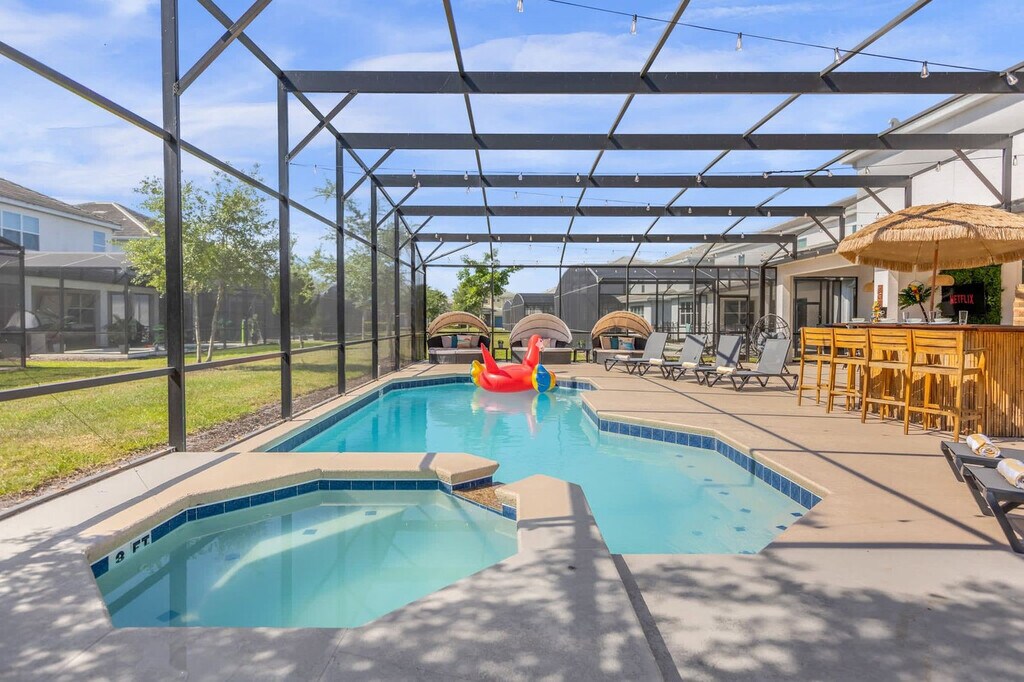 Feel at home in this stunning 15-bedroom mansion at Sonoma Resort, perfect for up to 36 guests. This spacious retreat features 15 bathrooms and is more than just a rental, it's a private resort experience built for large families, reunions, retreats, or group trips. This pet-friendly paradise is packed with amenities and entertainment for all ages. Enjoy a private swimming pool with a removable child safety fence, a Jacuzzi hot tub, a poolside tiki bar, an al fresco dining table for 12 guests, a BBQ grill, a billiards table, cornhole, yard games, sun loungers, shaded areas, and wall-mounted smart TVs. Inside, there is a Marvel-themed arcade room with life-size games, a PS4, an Xbox, console set-ups, foosball, air hockey, arcade-style gaming, and a private in-home movie theater with a projection screen, recliner seating, ambient lighting, and velvet ropes. The open-concept living room features 3 large smart TVs, and the fully equipped kitchen includes 2 full-size fridge/freezer combos and 2 dishwashers. There is also a massive indoor dining table, additional bar seating at the kitchen island, high-speed internet, central AC, and in-home laundry machines. Pool and hot tub heating is available upon request for an additional fee of $35/night per service and $60/night for both, with a minimum stay of 2 nights. A Pack 'N Play Crib and a highchair are available for one-time fees of $40 each. Pets less than 70lbs are welcome with a pet fee of $129. If you have more than one pet, an extra fee of $129 per pet will be collected after booking confirmation. Located in the desirable Sonoma Resort, this apartment is just minutes from Orlando’s top attractions and 5 minutes to shopping, dining, and groceries. Walt Disney World is 15 minutes away, Universal Studios is 25 minutes away, and Orlando International Airport (MCO) is 30 minutes away. As a guest, you’ll also enjoy complimentary access to Sonoma Resort’s exclusive amenities, including a gated community with a secure entrance, a resort-style swimming pool, poolside loungers, an outdoor Jacuzzi hot tub, a community clubhouse, lounge areas, and scenic walking/jogging trails. Parties, events, smoking/vaping of any kind, and the use of any illegal substances are strictly prohibited both inside the property and in its vicinity, and violation of this rule will result in a fine of $1000. Please maintain a respectful noise level at all times, as excessive noise, loud conversations, or disturbances that may disturb neighboring homes are not permitted and will result in a fine from the resort. Quiet hours are between 11PM - 7AM daily. No visitors are allowed after 11pm. Adhere to the speed limit of 25 MPH within the community. Vehicles parked on the street, blocking sidewalks, or on grass areas, particularly in front of the dumpster, are subject to towing at the owner's expense. Firearms and weapons are strictly prohibited in this home. [SI]