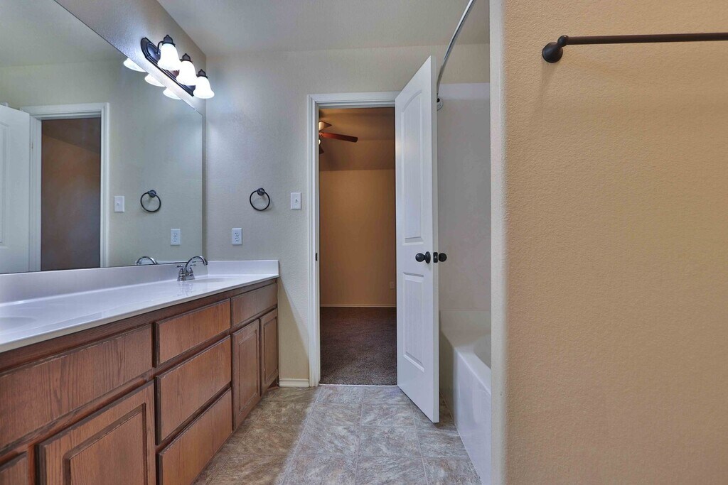 This beautiful home was built in 2012 in Goodnight Ranch!! You will love the layout. The living, dining and kitchen are all open to each other. Split bedroom plan. The kitchen has plenty of cabinet space and comes with a range, dishwasher and a microwave/vent hood. The master boasts a garden tub and separate shower. The yard is cozy with a 6' privacy fence. At TRM Rentals, we strive to provide an experience that is cost-effective and convenient. That’s why we provide a Resident Benefits Package (RBP) to address common headaches for our residents. Our program handles pest control, air filter changes, utility set up, credit building, and more at a rate of $50.00/month, added to every property as a required program. More details upon application