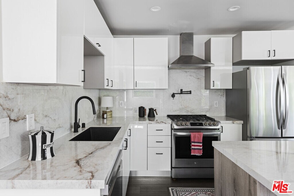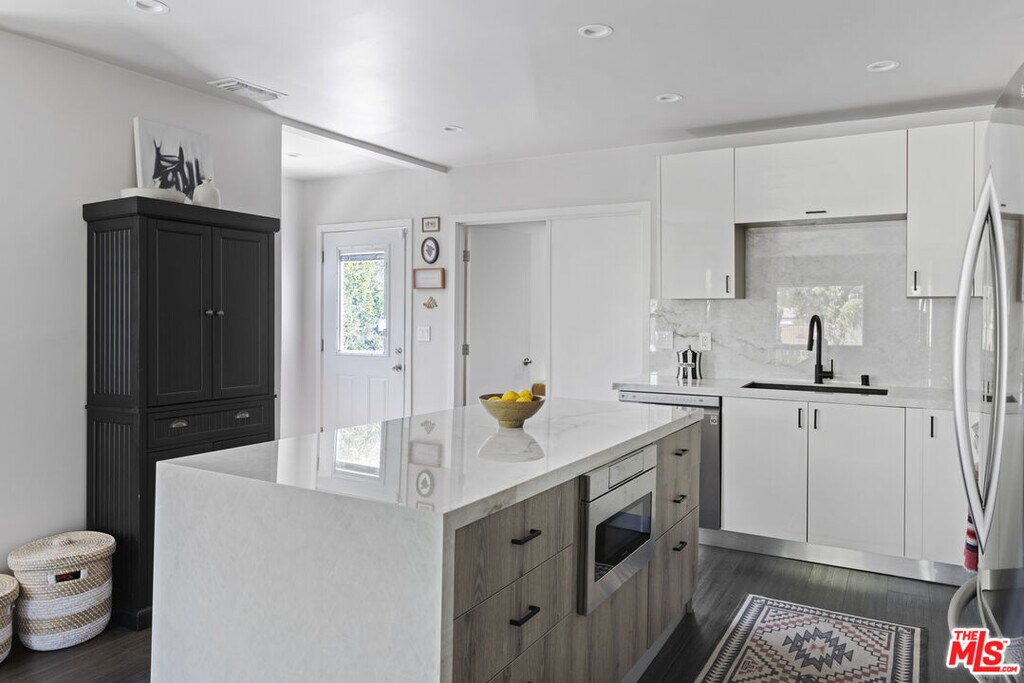 This ultra chic compound has a warm southwestern vibe. Hedged and gated the home is private and set back from the street. A thorough renovation in 2021 has created an open floor plan perfect for entertaining and with good flexibility of space for live/work scenarios. A well-equipped kitchen features a breakfast island, quartz countertops, pot filler and LG stainless appliance package. The large primary suite offers its own sitting area, walk-in closet and ensuite bath. Two guest bedrooms share a hallway bath. The front guest room sports a big picture window and would make for a perfect home office. Out back is a beautiful, private backyard with drought resistant landscaping and outdoor dining and living areas. There is even a separate light-filled office space adjacent to the garage with a mini-split unit for heat and AC. The garage is very large and could be used for additional storage or even a home gym. Updated systems include central HVAC, tankless water heater and a laundry room with side-by-side washer/dryer. On a charming, tree-lined street, the central location is close to Culver City, Inglewood, Sofi Stadium, Hollywood Park and Intuit Dome, LAX, the Metro K line and DTLA. Weekly gardener service is included, tenant pays all utilities. MLS# 26633929