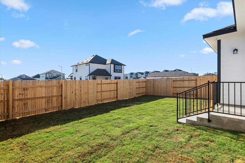 3-bedroom, 2-bath home built in 2025, located in the vibrant Pflugerville community. This single-story residence boasts an open floorplan with a spacious eat-in kitchen, pantry, and recessed lighting, creating a perfect space for entertaining and everyday living. The primary bedroom is conveniently located on the main level for privacy and ease. Step outside to enjoy the covered patio and beautifully landscaped corner lot with automatic sprinklers in the front, back, and side yards. Additional highlights include an attached single-door garage, driveway parking, and modern utility hookups for washer and dryer. Residents enjoy excellent community amenities, including sidewalks, walking/biking trails, a dog park, playground, high-speed internet, streetlights, and underground utilities. Thoughtfully designed for comfort, convenience, and active living, this home is ready to welcome you.