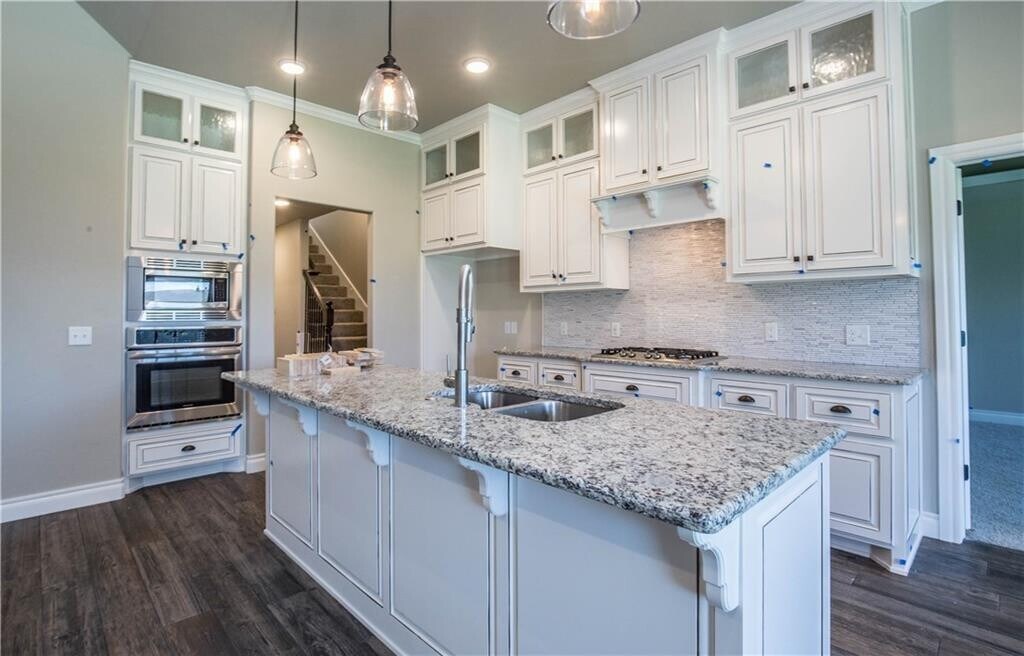 This Edmond home for rent is 1-mile from I-235,Kirkpatrick Turnpike & Chisholm Creek and all it offers. Including storm shelter,4 bedrooms,3 full bathrooms,& bonus room. Custom cabinetry & granite counter tops throughout the whole house! Kitchen has built in stainless steel gas range & electric oven,walk in pantry & center island with stainless steel sink. Living room has gas fireplace with stacked stone & cathedral ceiling. Master suite features a boxed ceiling detail with crown molding & bathroom separate vanities,large walk in sauna shower,whirlpool tub & large walk in closet! Home includes Rinnai Tankless Heater,R-44 Insulation,whole home air purification,solar boards,water softener,fenced backyard and upstairs bonus room. NO CATS (OWNER IS HIGHLY ALLERGIC); dog at owners discretion;