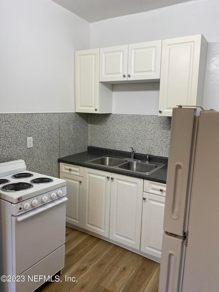 Super cute 1 BR apt. in the RAP Historic District. First floor unit in a 3-unit 1916 building,in a great loc between 5-Points and King St. Close to downtown,St Vincent's,I-10 and I-95 and more. Everything you need and not much you don't,with water included. Kitchen with newer apt. size range and refrig. Just refinished wood floors with inlay in bedroom. Newer plank vinyl in liv rm and kitchen. Newer linoleum in bath. Hi-efficiency LG window Heat and AC unit plus extra AC unit. All new mini-blinds. Off street parking right in front of unit. Newer ceiling fan in liv rm. Stand up shower enclosure,tank water heater. Sorry,no pets. Owner is a licensed Real Estate agent. MLS# 2116469