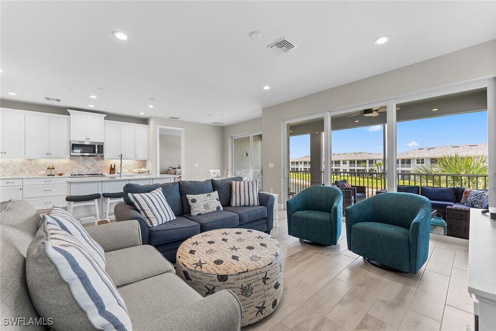 Nestled in the amenity rich gated community of Seychelles located just minutes from Downtown Olde Naples,this light and bright open-concept corner unit is conveniently located within walking distance to the community pool and clubhouse and features 2 bedrooms and a large den. Loaded with luxury features such as hurricane impact doors and windows,plantation shutters,contemporary quartz countertops,white shaker style soft-close cabinets,under mount cabinet lighting,designer backsplash,and premium stainless steel appliances. The spacious primary bedroom features a sizable walk-in closet,frameless glass shower,and dual sinks with plenty of undercabinet storage. Enjoy the most sought after light & bright Southern exposure with picturesque sunsets over your long lake view. Furnishings included! Tenant pays electric only! Seychelles features resort-style amenities that cater to your every desire,including a state-of-the-art 4,500 sq ft clubhouse,a stunning resort-style pool and spa,a BBQ area perfect for entertaining,well equipped gym,and a cozy fire pit for evenings under the stars all located just a short drive from downtown Naples or Marco Island