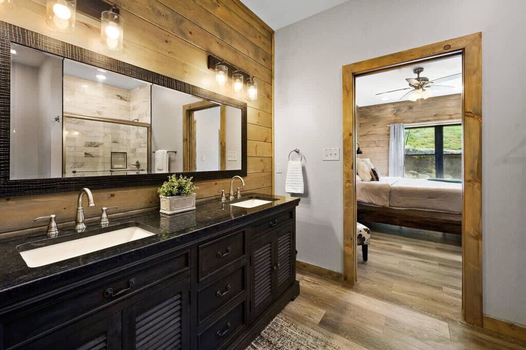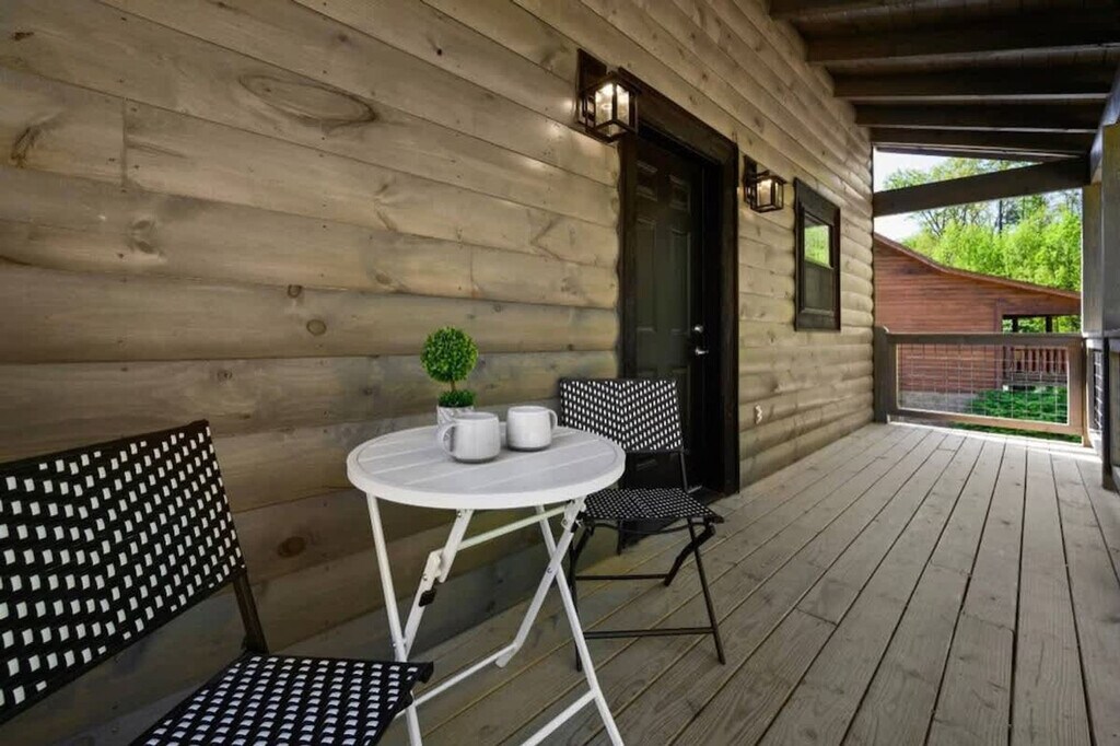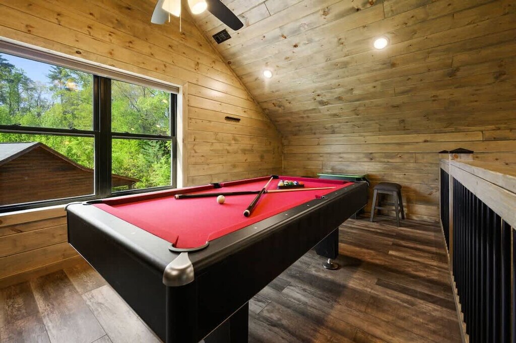 Enjoy a stay at Smoky Blues Cabin and feel at home. This gorgeous cabin is great for family and friend vacations. All levels require stair access. This cabin features a fully stocked kitchen with bar seating, a chic living, dining and porch area, a washer/dryer, smart TVs, and Wi-Fi. Enjoy an indoor pool downstairs or warm up in the hot tub on the back porch. Pets are welcome with a $150 fee. The cabin is conveniently located just minutes from the Pigeon Forge strip and Dollywood. Nearby places to visit include Azul Cantina (9 mins drive), Mel's Classic Diner (6 mins drive), Blue Moose Burgers & Wings (9 mins drive), Goats on the Roof of the Smoky Mountains (6 mins drive), and Alcatraz East Crime Museum (9 mins drive). Guests are required to sign a Rental Agreement. The minimum age to rent is 21 years old. [SI]