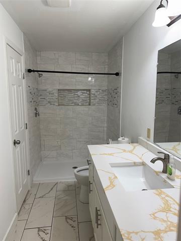 Step into this fully updated 3-bedroom, 2-bath home offering modern comfort and an inviting open-concept layout. The spacious living, dining, and kitchen areas create a seamless flow ideal for everyday living and entertaining. The kitchen and both bathrooms feature solid stone countertops, adding a touch of luxury and durability throughout. The primary suite includes a private en-suite bathroom and a generous walk-in closet. Two additional bedrooms provide ample space and are filled with natural light thanks to large, well-placed windows. Enjoy outdoor living in the fully fenced backyard, complete with a brand-new deck perfect for relaxing or hosting gatherings. Pets are welcome, with breed restrictions in place.
