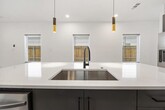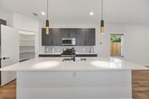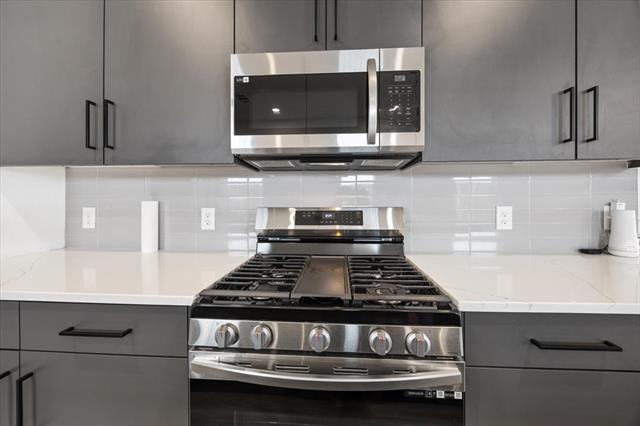 Welcome Home! This 2 story home includes gorgeous upgrades such as an electric fireplace, accent walls, and dramatic tiles! All 3 bedrooms are upstairs and the primary includes an ensuite bathroom and walk-in closet while the other 2 rooms share a hall bath. The laundry area is upstairs as well including a washer and dryer provided for convenience. Downstairs is the open light and airy living spaces with a fabulous kitchen with large pantry, island, and SS appliances, dining and living areas. There is a security center across the street as well.