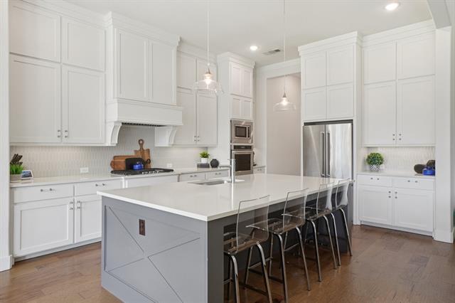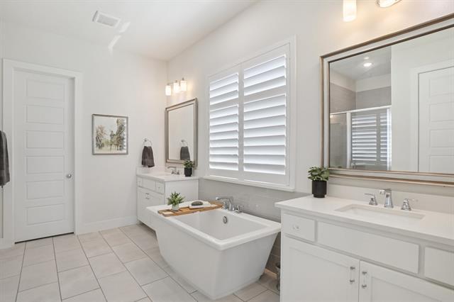 Welcome to luxury single-story living in the heart of Argyle! This stunning 4-bedroom, 4.5-bathroom home offers a thoughtfully designed layout with high-end finishes, functional spaces, and beautiful attention to detail throughout. Step inside to find an open-concept floor plan filled with natural light, warm tones, and elegant touches. The dedicated home office with glass French doors provides a quiet and stylish space for remote work or study, while the separate media room with sliding pocket doors is the perfect retreat for movie nights or game day gatherings. At the heart of the home, the chef’s kitchen is a true showstopper — featuring a gas cooktop, double ovens, a large center island ideal for entertaining, and cabinetry extending all the way to the ceiling for both beauty and functionality. The kitchen opens seamlessly into the spacious living and dining areas, creating a warm and inviting space for hosting or relaxing with family. Each of the four bedrooms includes its own en suite bathroom, providing privacy and comfort for family members and guests alike. The luxurious primary suite is a serene escape, complete with a spa-inspired bath and generous closet space. Enjoy indoor-outdoor living at its finest with a covered back patio equipped with a remote-controlled privacy and sun screen, allowing you to create shade or seclusion at the push of a button. The fully turfed backyard offers low-maintenance beauty year-round — perfect for kids, pets, or weekend entertaining. Located in a desirable Argyle community known for charm, green spaces, and highly rated schools, this home brings together upscale living, smart design, and modern comfort in a truly exceptional package. EV Charger in garage