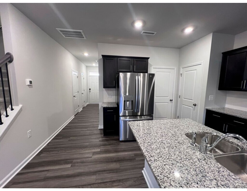 This three bedroom home is move in ready! Downstairs is your open concept living area and 1/2 bathroom. Granite countertops, all kitchen appliances included. Recessed lighting, gorgeous LVP flooring, once car garage and driveway. Private back patio. Upstairs find three bedrooms. Master bathroom has dual vanity and tiled shower with built in tiled seat (or shelf)! Huge master closet. Washer and dryer included!! Carpeted bedrooms provide comfort. Text for info!