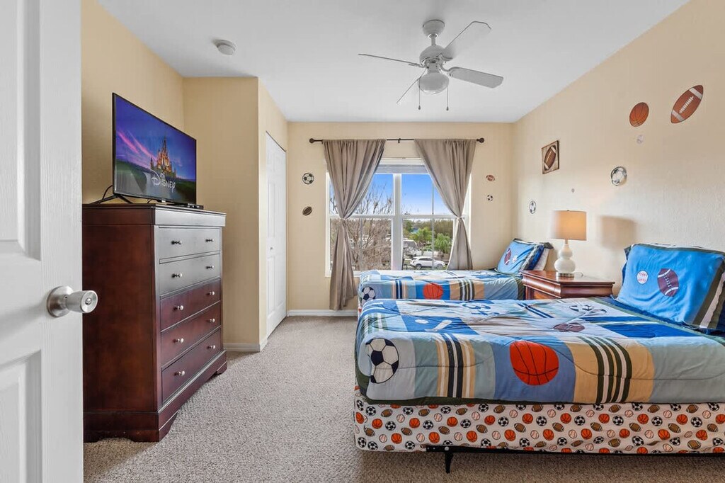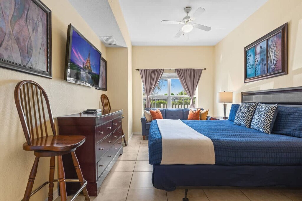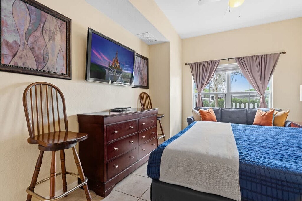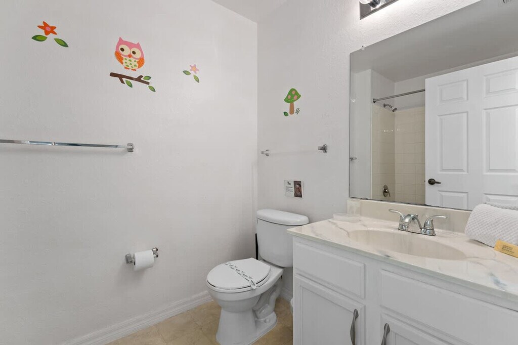 Welcome to this delightful 3-bedroom home, designed to comfortably accommodate up to 8 guests. Feel at home in this perfect space for family gatherings or fun get-togethers with friends. This home features TVs in the living room, master bedroom, and second-floor bedrooms. Spectrum internet with up to 300mbps speed Wi-Fi is provided, though wireless speeds may vary. A complimentary pack n' play is available for all stays, but sheets are not provided. A pet is welcome with a pet fee of $250. Extra services, such as early check-in, late check-out, and mid-stay cleanings, are optional and available for an additional fee. A grill is available for a fee of $35 plus tax, but the propane tank is not included. Enjoy a variety of recreation options and exciting activities for all ages including a huge community heated pool with sun deck and hot tub, children's playground, state-of-the-art fitness center, library, children splash pad, sand volleyball, basketball and tennis court, game room with video arcade and billiards. The property distance to the main clubhouse is around 4 minutes walking. The maximum weight limit for the bunk bed is 200 lbs. Service animals and Emotional Support Animals are welcomed with a written request at the time of reservation. If you bring a pet without previous authorization, you will be charged a non-refundable penalty fee of $500 plus tax. All properties are 100% smoke-free, and in case of any signs of smoking, there will be an additional non-refundable fee of $250 plus tax charged. Guest agrees not to set the temperature lower than 70ºF or above 78ºF degrees. An unauthorized additional guest will incur a penalty of 50% of the total night rate of the reservation plus tax charged. Check-in is at 4PM and check-out is at 10AM. [SI]