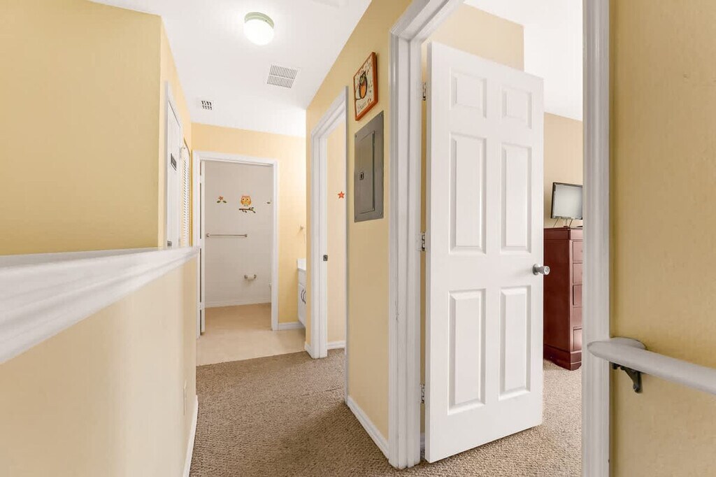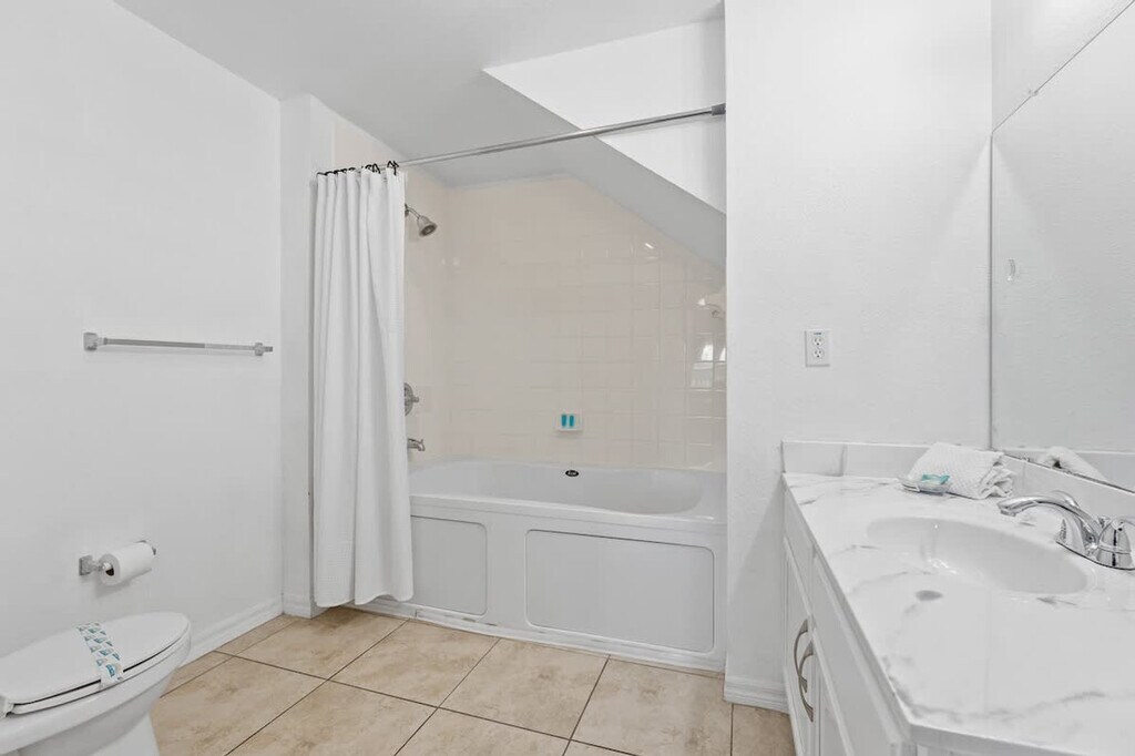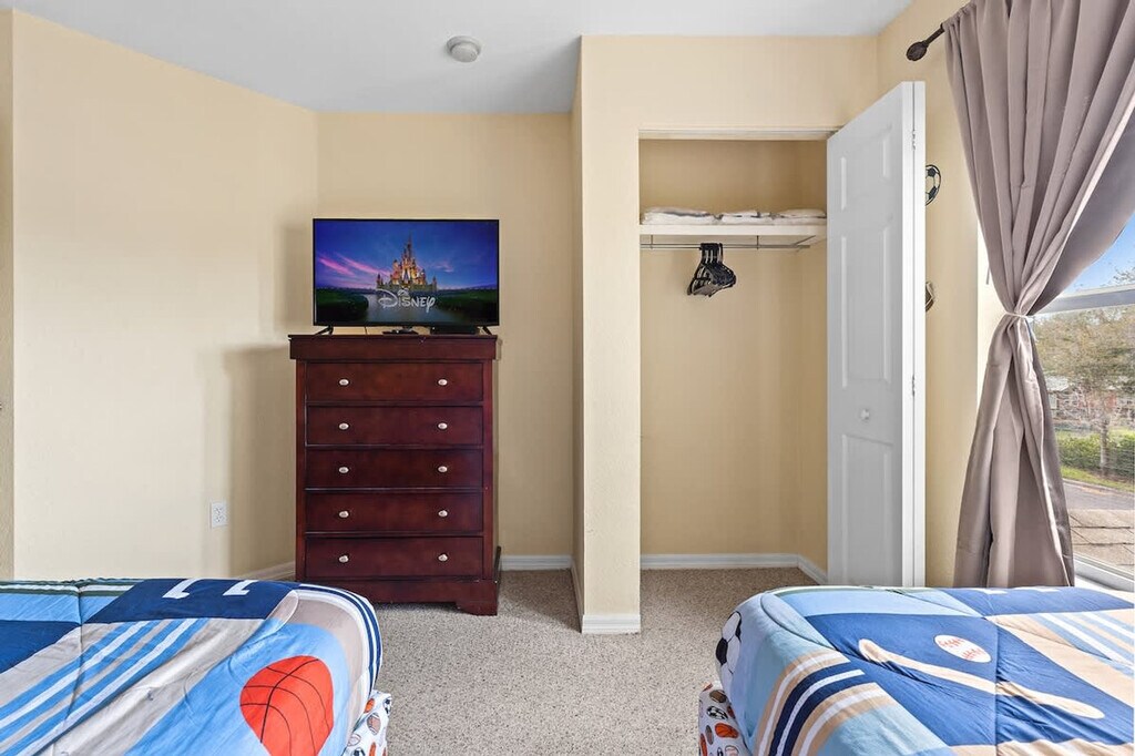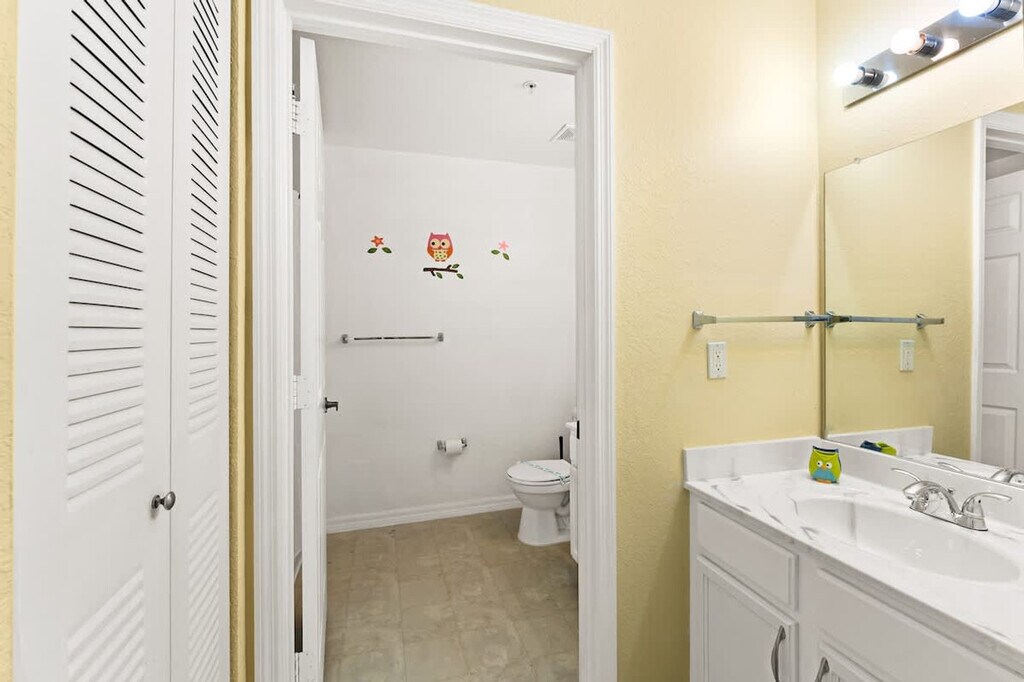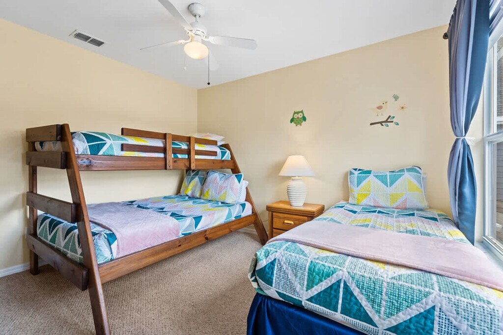Welcome to this delightful 3-bedroom home, designed to comfortably accommodate up to 8 guests. Feel at home in this perfect space for family gatherings or fun get-togethers with friends. This home features TVs in the living room, master bedroom, and second-floor bedrooms. Spectrum internet with up to 300mbps speed Wi-Fi is provided, though wireless speeds may vary. A complimentary pack n' play is available for all stays, but sheets are not provided. A pet is welcome with a pet fee of $250. Extra services, such as early check-in, late check-out, and mid-stay cleanings, are optional and available for an additional fee. A grill is available for a fee of $35 plus tax, but the propane tank is not included. Enjoy a variety of recreation options and exciting activities for all ages including a huge community heated pool with sun deck and hot tub, children's playground, state-of-the-art fitness center, library, children splash pad, sand volleyball, basketball and tennis court, game room with video arcade and billiards. The property distance to the main clubhouse is around 4 minutes walking. The maximum weight limit for the bunk bed is 200 lbs. Service animals and Emotional Support Animals are welcomed with a written request at the time of reservation. If you bring a pet without previous authorization, you will be charged a non-refundable penalty fee of $500 plus tax. All properties are 100% smoke-free, and in case of any signs of smoking, there will be an additional non-refundable fee of $250 plus tax charged. Guest agrees not to set the temperature lower than 70ºF or above 78ºF degrees. An unauthorized additional guest will incur a penalty of 50% of the total night rate of the reservation plus tax charged. Check-in is at 4PM and check-out is at 10AM. [SI]