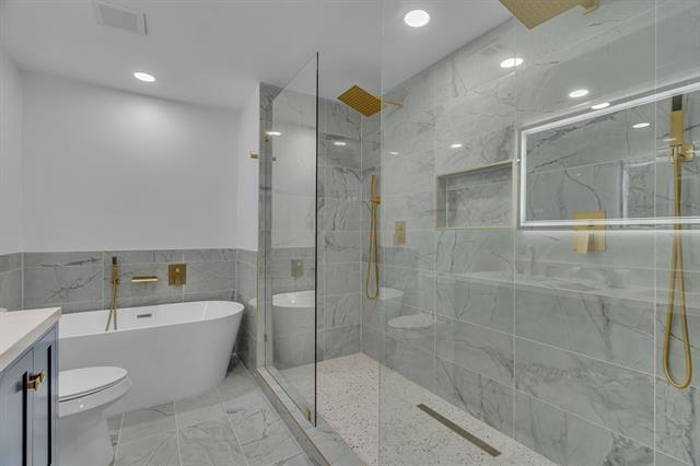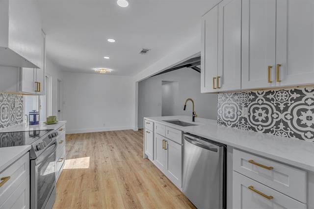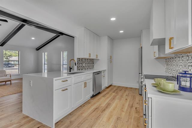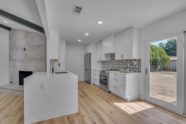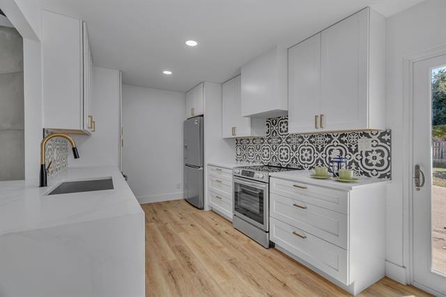 This wonderful Corinth home is located in a well establish quiet neighborhood. It boasts 3 bedrooms, 2 baths with swing entry deep 2 car garage. This is a well-appointed home with updated modern lighting, renovated kitchen and bathrooms. There is a spacious family room with vaulted ceiling and bright natural lights from large windows. The primary bedroom has adjacent ensuite bathroom; beautiful glass walk-in shower, dual vanity sinks with dual walk-in closets. Secondary bedrooms are down the hall located next to second bathroom. The renovated kitchen has such charm and good use of space, updated appliances, tile backsplash and hard surface counter tops. There is a eat-in kitchen. The back door accesses large backyard with an open patio for entertaining family and friends. Time to BBQ. There is a space to have a garden if you like. Sorry no pets. This home is located minutes away from schools and parks, shopping, dining and entertainment.