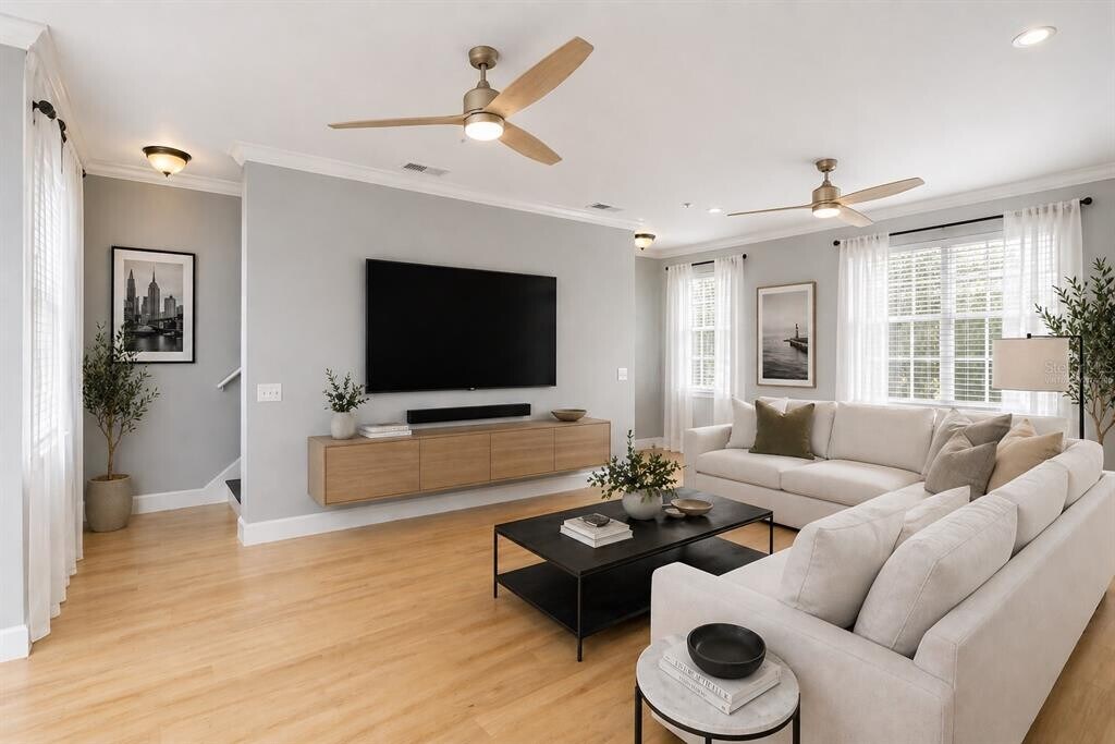 Located in the highly sought-after Hyde Park / SoHo district of South Tampa,this beautifully maintained end-unit townhome offers 3 bedrooms,3.5 bathrooms,and over 2,000 square feet of living space. Enjoy the convenience of a spacious two-car garage and a prime walkable lifestyle just steps from SoHo’s popular restaurants,bars,shopping,and Publix. The first floor features a private guest suite with its own full bathroom and durable vinyl plank flooring—ideal for visitors or a home office. The second level serves as the main living area,boasting high ceilings,abundant natural light,crown molding,hardwood floors,recessed lighting on dimmers,and eight windows with 2" blinds. A convenient powder bath is also located on this level. The kitchen is thoughtfully designed with granite countertops,wood cabinetry,stainless steel side-by-side refrigerator with sn ice and water dispenser,two pendant lights,and a double bi-fold door pantry closet. The third floor showcases a fully upgraded primary suite with hardwood flooring and a luxurious ensuite bath featuring a dual-sink granite vanity,jetted garden tub,and a frameless glass walk-in shower with dual shower heads,including a rain shower. This level also includes a secondary bedroom with a full bath,along with a washer and dryer for added convenience. Enjoy walking or biking to Bayshore Boulevard,Hyde Park Village,and nearby amenities. Ideally located with a short commute to Downtown Tampa,MacDill Air Force Base,Midtown,Westshore District,Tampa General Hospital,and St. Joseph's Hospital. Peace of Mind! This property is not located in a flood zone and experienced no issues from Hurricanes Milton or Helene. Schedule your private tour today! MLS# TB8502663