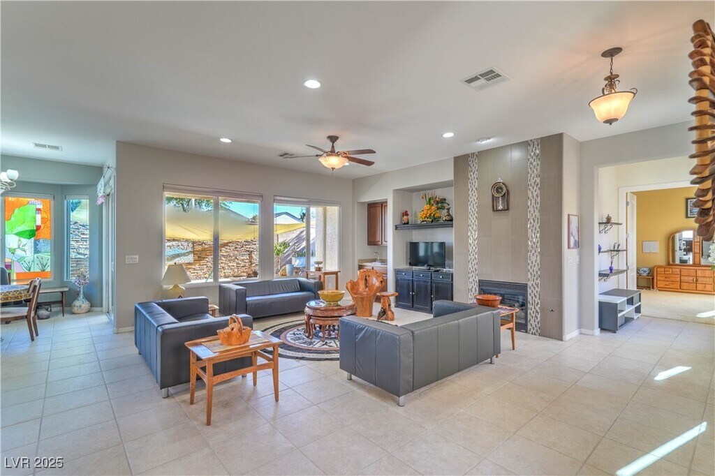 Rare fully furnished Trenton WITH POOL and Solar Electric System (installed March 2023) Highly upgraded in the premier 55+ Age Restricted community of Sun City Anthem! Approximately 2368 sq ft of living space, 2 bedrooms, Den, 2.5 baths, 2 car garage. Formal Dining Room, Indoor Laundry Room. Fully fenced rear yard w/pool & solar mats. Covered Patio, BBQ, Fire Pit. Gated Front courtyard w/brick pavers offers security and lots of room for entertaining. Great Room w/gas fireplace & wet bar. Chef's island kitchen w/granite counters, WiFi enabled refrigerator. 6 TVs! Westin Hotel Heavenly beds! Guest powder room features a Toto heated bidet that opens & closes automatically and self-cleans. Professional weekly Pool Maintenance included plus access to all community amenities is included (3 Clubhouses, Indoor & Outdoor Pools, Gym, Tennis Courts, Bocce Ball, Pickle Ball, Clubs, and so much more!). Can you see yourself saying Alexa, please make ice for the pool party?"