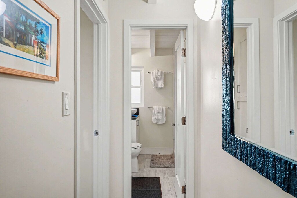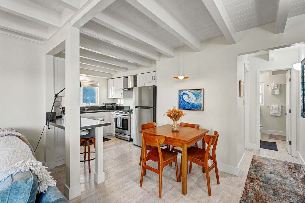 Feel at home in this brand new 1-bedroom, 1-bath condo in a prime San Diego location, just steps from the water. This cozy unit is the perfect spot for a relaxed beach getaway. This 450-square-foot condo features a compact kitchen with all the basics for light cooking. Other amenities include a private entrance, self check-in with keypad, and beach toys. Dedicated garage parking is available. Enjoy being steps from Mission Bay and Bayside Walk for peaceful strolls, biking, or paddleboarding. The condo is also within walking distance of the Mission Beach Boardwalk, a lively 3-mile oceanfront promenade filled with local shops and cafes, and Belmont Park, a classic beachside amusement park. A short drive away, you'll find SeaWorld San Diego, Mission Bay Golf Course & Practice Center, and Pacific Beach Pier. The total number of guests must not exceed what is listed on the reservation, including children and infants. You may have up to 3 additional daytime guests, but they must leave by 10:00 PM. Any overnight guests not listed on the reservation or anyone staying past 10:00 PM will incur a $100 per person, per night fee and may result in cancellation of your stay. The backyard is open between 8:00 AM – 10:00 PM, and quiet hours are from 10:00 PM – 8:00 AM. Smoking of any kind—including vaping and cannabis—is strictly prohibited anywhere inside or outside the home, and violations will result in a minimum $600 odor removal fee. Parties, events, or large gatherings are not permitted. A $150 cleaning fee may apply if the home is left excessively dirty. Unapproved pets will result in fines and additional cleaning fees. There is a minimum age requirement of 25 years old for all primary renters. Check-in is at 4:00 PM and check-out is by 10:00 AM. Please note this listing does not have air conditioning. The spa is currently undergoing maintenance and is temporarily out of order. Registration Number: STR-04292L [SI]