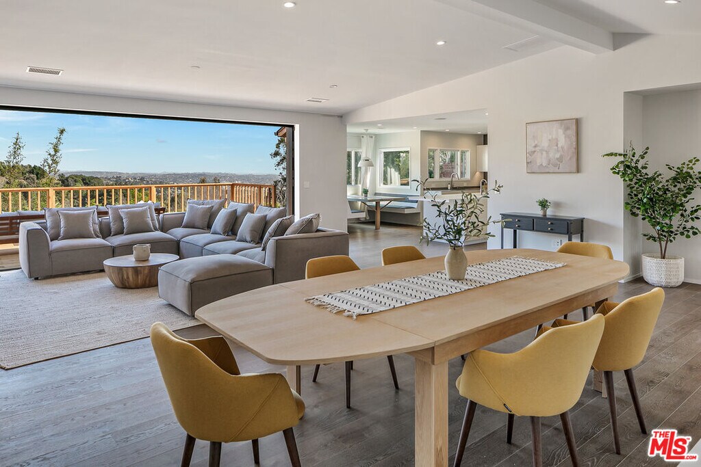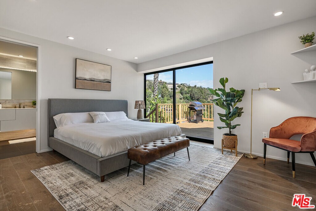 Tucked away on a quiet cul-de-sac above iconic Mulholland Drive, this newly remodeled, fully furnished Hollywood Hills retreat unfolds like a private escape suspended above the city. Framed by canyon ridge lines and glittering skyline views, the home captures Los Angeles at its most cinematic serene by day, luminous by night.Sunlight pours into an open, flowing interior where wide-plank wood floors and clean architectural lines create a sense of warmth and calm. Expansive glass walls slide open to a generous outdoor deck, blurring the line between inside and out and setting the stage for sunset dinners, slow mornings, and evenings spent watching the city glow below. The chef's kitchen is both refined and effortless, designed to anchor the home with sleek cabinetry, integrated appliances, and an understated elegance that invites gathering without pretense. Every space feels curated yet livable, with a cohesive palette and thoughtful details that elevate the everyday. Three tranquil bedrooms offer privacy and flexibility ideal for guests, creative pursuits, or a dedicated home office while spa-inspired baths echo the home's modern, relaxed sensibility. Outdoors, the elevated deck becomes an extension of the living space, a front-row seat to sweeping canyon vistas and the rhythm of Los Angeles beyond.Privately positioned yet moments from Hollywood, Studio City, and the cultural pulse of the city, this is more than a residence it's a lifestyle defined by light, views, and quiet sophistication, offering a rare opportunity to experience the Hollywood Hills at its most refined. MLS# 26643169