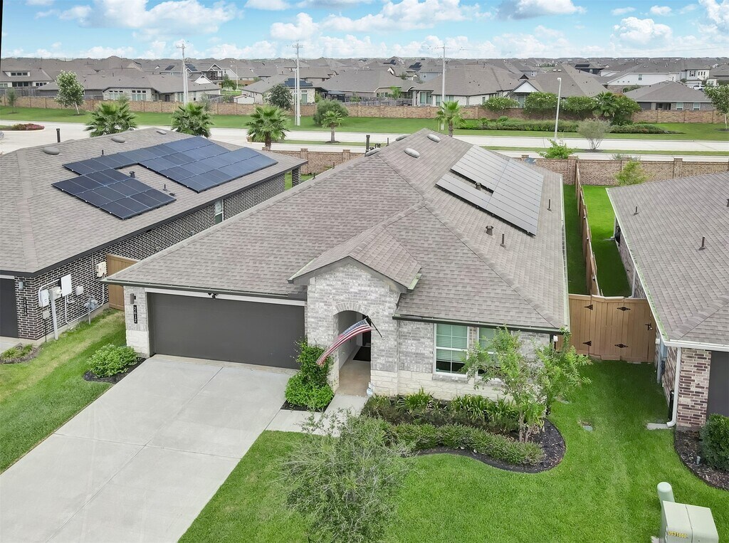 Step into the Lakeway plan—a one-story dream home with 4 spacious bedrooms,3 full baths,Office and a 2-car garage,designed for modern living at its best! From the inviting foyer that opens to a guest suite,to the chef-inspired kitchen with a sleek breakfast bar,gorgeous countertops,and with ALL appliances included,this open-concept beauty was built to impress. The airy family room flows seamlessly into the dining area,while the split layout offers additional bedrooms and a full bath tucked away for comfort. The private primary suite is a true retreat with dual vanities,a spa-like bath,and a walk-in closet you’ll love. Outside,relax under the covered patio with NO BACK NEIGHBORS. Enjoy the ultimate bonus: solar panels with battery storage for energy efficiency and savings! All of this in Lago Mar,home to the jaw-dropping 12-acre crystal-clear lagoon,walking trails,fitness centers,Blue Lagoon Bar & Grill,and resort-style living that makes every day feel like vacation! MLS# 16383687