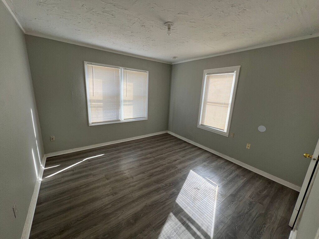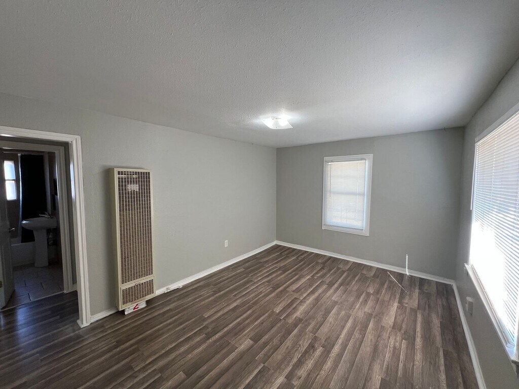Great spacious 2 bed 1 bath home with nice sized fenced yard. Cutest blue siding on exterior and cozy colors on interior. Easy keep flooring throughout. Comes with gas stove and fridge is provided too. Brand new window units to keep house the perfect cool temp in summer will be provided. Seemingly like a quiet little nook of town but still so convenient to city.