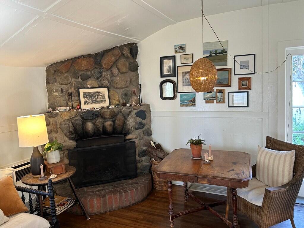 Small ocean view cottage on ocean side of Coast Hwy just short walk down street to one of nicest & secluded beaches in Laguna, Victoria Beach. Hardwood floors, wood burning stone fireplace, private rear yard with brick patio. Includes stove & refrigerator, & washer & dryer for your exclusive use. Very light & bright because of all the windows. Works best for one person because of size. Available now. $2850 per month plus a refundable security deposit. Let's talk about Pets.