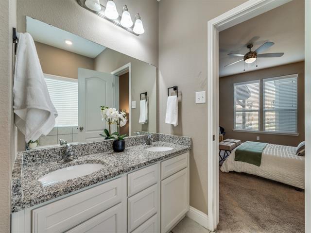 This spacious 5-bedroom home blends comfort, function, and style with its brick exterior, stone accents, and inviting covered porch. Inside, an open floor plan welcomes abundant natural light and effortless everyday living. The eat-in kitchen features granite countertops, a large island with breakfast bar seating, stainless steel appliances, gas cooktop, built-in oven–microwave combo, and a vent hood—perfect for cooking and gathering. A flexible front room on the first floor offers space for a home office, playroom, or additional living area. The primary suite provides a relaxing retreat with a dual-sink vanity, oversized walk-in closet, and separate tub and shower. Upstairs, a generous game room anchors the second level, along with three secondary bedrooms—each with walk-in closets—and a full bath. A junior primary suite with its own ensuite bath and large walk-in closet adds valuable versatility for guests or multi-generational living. Step outside to an extended backyard patio with plenty of room to entertain, grill, or unwind with a cool drink on sunny Texas days. Located in the desirable Winn Ridge community, residents enjoy a resort-style pool, walking trails, and close proximity to shopping, dining, and entertainment with easy access to Hwy 380 and the Dallas North Tollway. One of the bedrooms upstairs is soundproof. Smart thermostat has 2 sensors around the house to maintain balanced temperature to save on electricity. Buyer and Buyer’s Agent to verify all information. Information deemed reliable but not guaranteed.