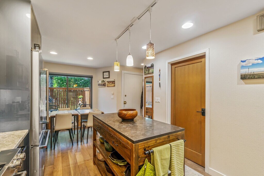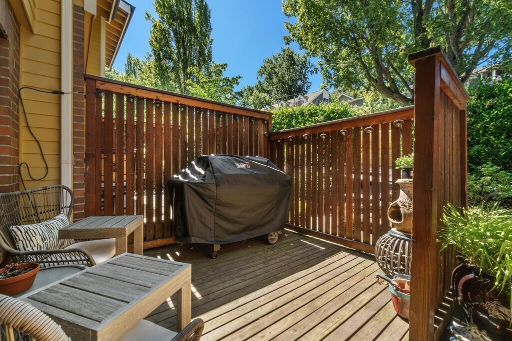 An urban oasis just moments to dining, shopping, galleries, transit & the Arboretum. This spacious townhome-style exceeds expectations with a modern reno - clean lines, gorgeous custom finishes & thoughtful, well-crafted design. Beautiful kitchen with eco-friendly counters, high-end appliances opens to brunch-ready dining area. Relax in the spacious living room, complete w/fplc & adjacent deck with serene, sylvan outlooks. Gorgeous upper floor bedrooms, stunning remodeled bathrooms with heated floors, defog mirror & cabinet, and dual shower head in master. Unit includes chic lofted office (& guest space). Impressive built-in storage throughout. Pull directly into your roomy individual garage w/extra space for home gym or gaming/rec area & kayaks/bikes. 5 minute walk to the Microsoft connector and situated on bus lines to downtown Meta, Amazon, and Google campuses. Two portable AC units available for added comfort!