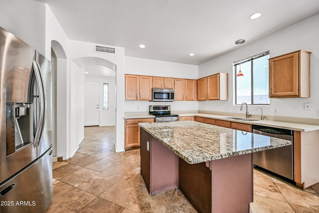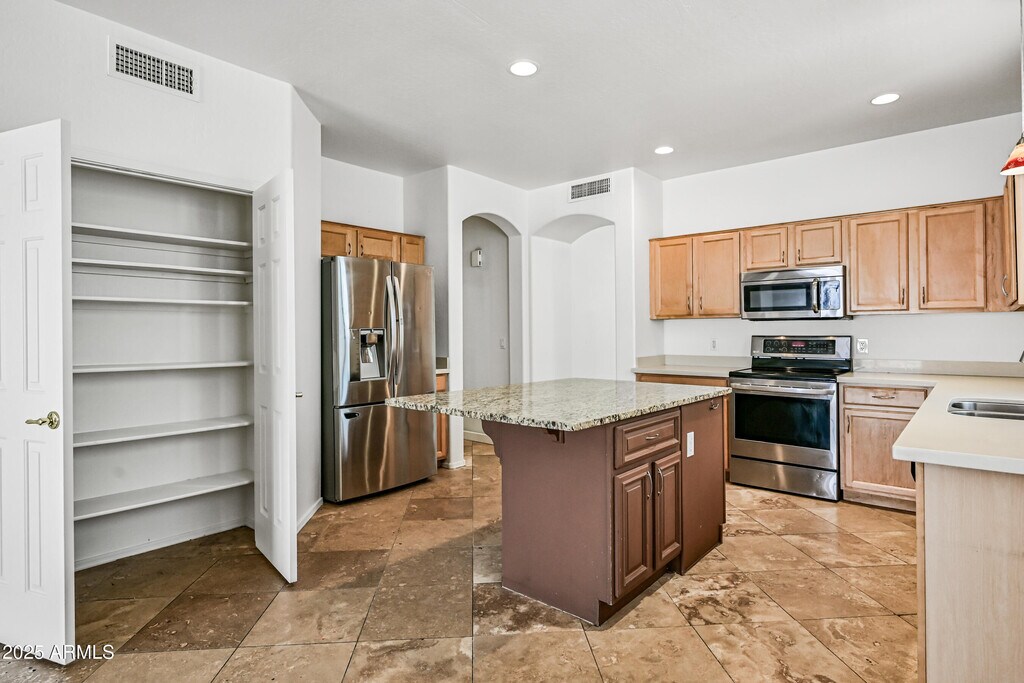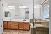 Welcome to your new home in the highly sought-after gated community of Fairways at the Legacy! This immaculate residence features a bright,open floor plan with beautiful travertine tile and neutral carpet in the bedrooms. The updated kitchen boasts quartz countertops,an expanded granite island,stainless steel appliances,abundant cabinetry,and a spacious pantry. The impressive primary suite offers a sitting area and an oversized 8x10 walk-in closet,plus a spa-like bath with dual sinks,a soaking tub,and a beautifully updated shower. Enjoy relaxing in the private backyard with a covered patio and lush green lawn. A truly move-in-ready home that is sure to impress!