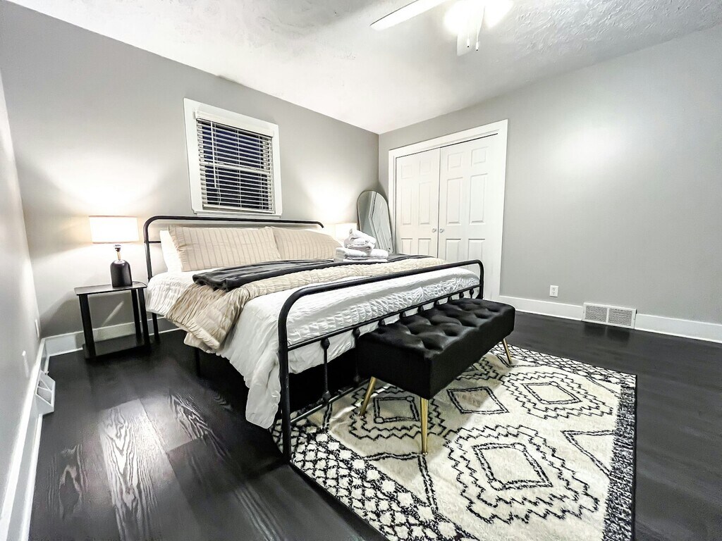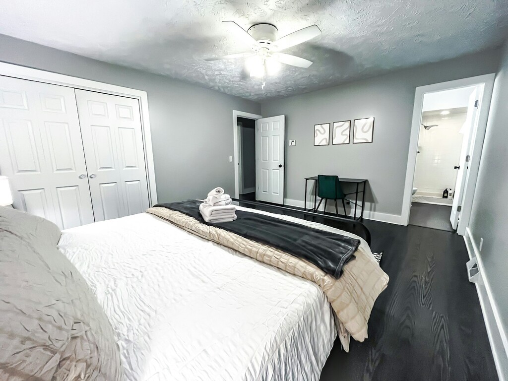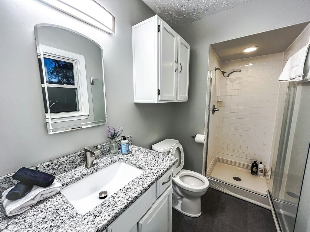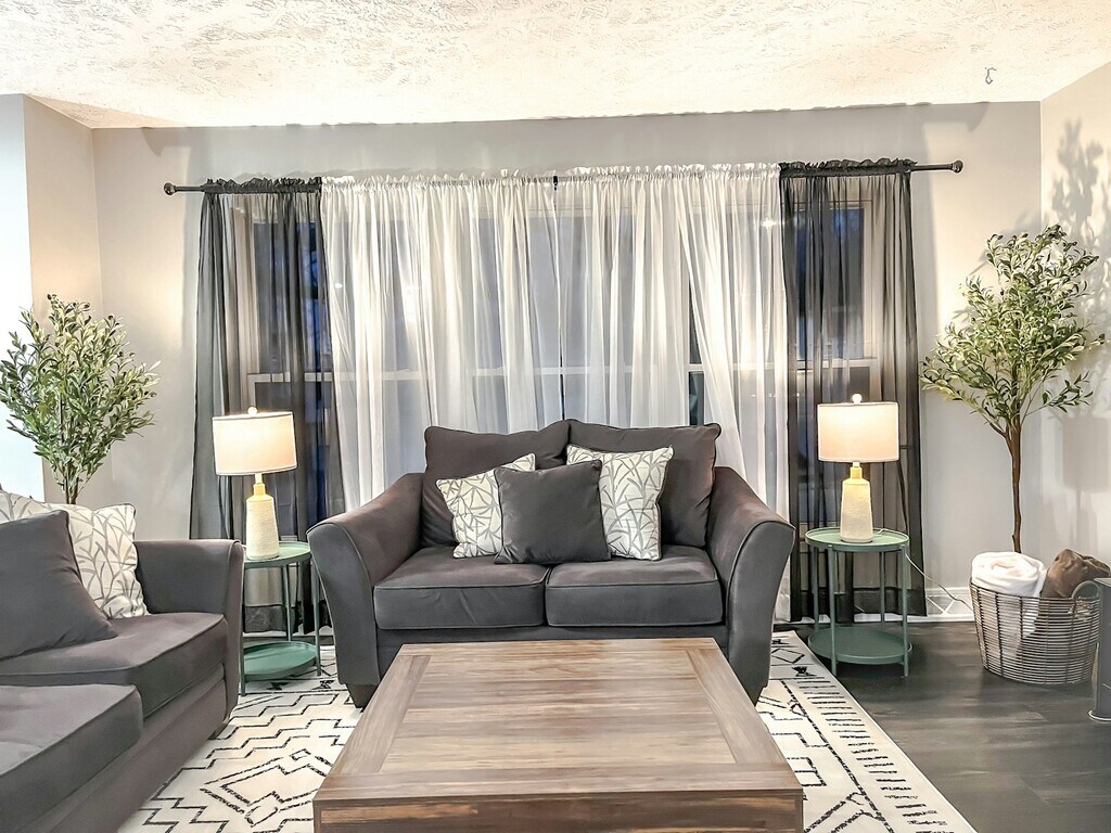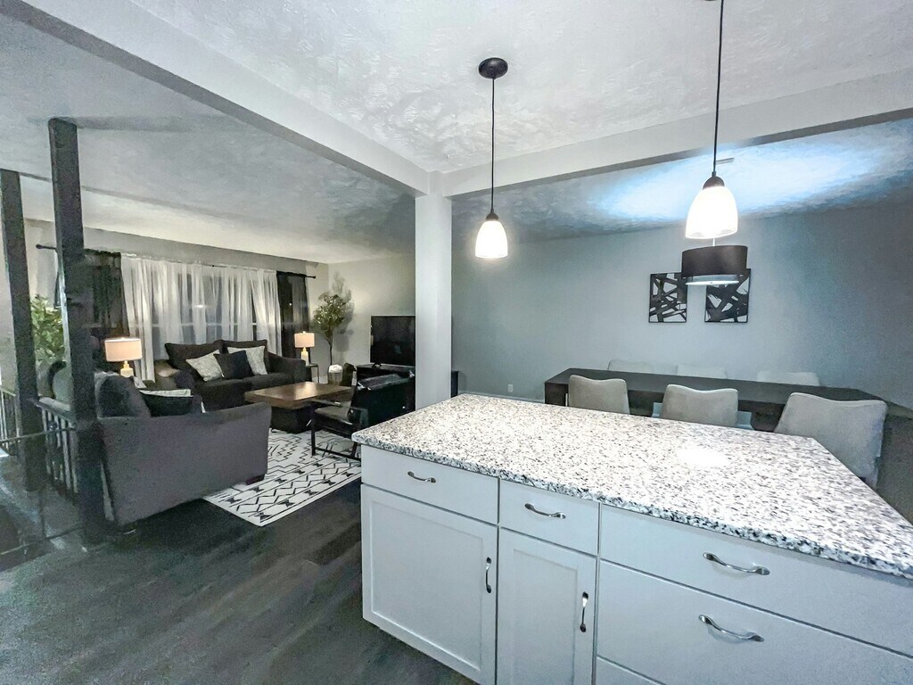 Welcome to our charming split-level 3-bedroom, 3-bathroom house in the heart of a lovely family neighborhood! Whether you're traveling for business or leisure, this inviting home offers the perfect blend of comfort, convenience, and a warm, welcoming atmosphere. Located within walking distance to the delectable delights of Qdoba, and a mere 20-minute drive from the airport, your stay here promises to be both memorable and stress-free. Some things this cozy home includes... Main floor: - Full kitchen - Living room - Dining room - 3 bedrooms - King bedroom with en suite - 2 bathrooms Basement: - Laundry room - Half bathroom - Living room - Game area
