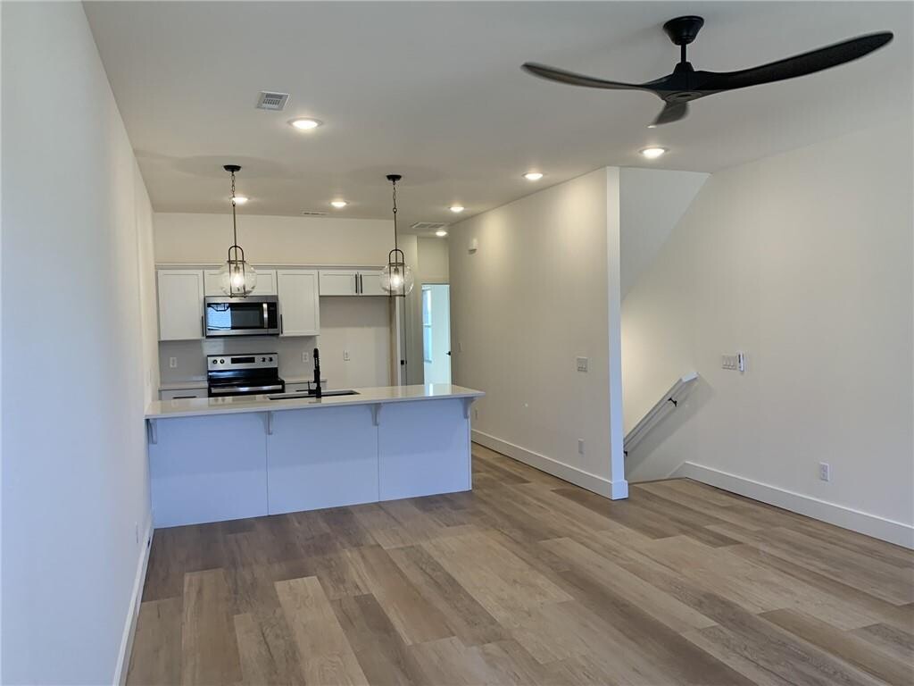 Great location across from Osage Park, Lake Bentonville, and Bentonville Airport (private planes only). Easy access to Climb Bentonville, Bentonville Brewing, Walmart HQ, and Bentonville Square. The second level features an open living room with great natural light and modern fixtures. Kitchen includes white cabinets and quartz countertops. Primary bathroom offers a walk-in shower and double vanity. Third floor has two guest bedrooms, a full bath, small office space, and large storage room. Main level includes a tandem 2-car garage, additional storage, and access to a fenced backyard with patio. Fireplace is ornamental only.**$50 PET RENT PER PET - $350 NON-REFUNDABLE PER PET** MLS# 1330932