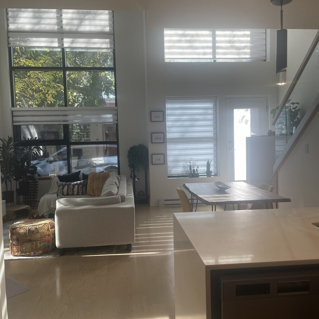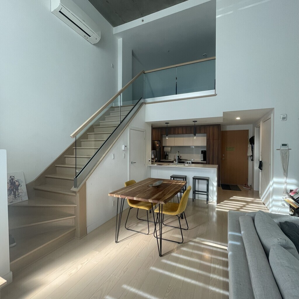 1 Bedroom 1.5 bathroom | 711 sqft Modern 2-Level Condo for Rent – Pointe-Saint-Charles | $2,300/month Experience contemporary living in this bright and stylish 711 sq ft condo built in 2021, ideally located at 2615 rue Augustin-Cantin, just steps from the Lachine Canal, Atwater Market, and Charlevoix Metro. This rare two-story unit combines comfort and design with an open-concept main level and a private upstairs suite. Features • Private entrance with internal access to the rest of the building for added comfort and security • Remarkable 17-foot ceilings filled with natural light • One spacious bedroom with walk-in closet and ensuite bathroom • Large modern kitchen and open-concept living area — perfect for entertaining • Convenient powder room and in-unit laundry on the main level • Indoor garage and private storage unit included Building Amenities • Elevator • Fully equipped fitness room • Rooftop terrace with BBQ with panoramic city views • Common room for gatherings • Bicycle storage area • Secure and well-maintained building Location & Lifestyle Perfectly located near the Lachine Canal and Notre-Dame Street, with both nature and culture at your doorstep: • Lachine Canal – 3 min walk for biking, walking, or kayaking • Notre-Dame Street – cafés, shops & restaurants within 10 min • Parc D’Argenson – 5 min walk • Atwater Market – 6 min away • Charlevoix Metro (Green Line) – 3 min walk • Lionel-Groulx Metro (Orange Line) – 11 min walk • Easy access to Highways 15 & 20, Victoria & Champlain Bridges • Close to Griffintown, Little Burgundy, Downtown, Verdun et Saint-Henri Nearby Conveniences Schools, childcares, fitness centers, groceries, coffee shops, libraries, and parks nearby. Rental Details • Rent: $2,300 / month • Included: Indoor parking, storage locker, condo fees, hot water, appliances, air conditioning, and roller blinds. • Excluded: Electricity, internet, insurance • Availability: November 1, 2025 • Conditions: Credit check, proof of income, and references required. Tenants will be required to pay home insurance. • Non-smoking unit | No pets | Minimum 12-month lease