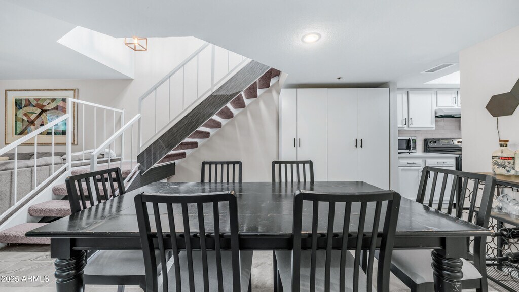Welcome to this tastefully updated end unit that comes with TWO parking spots,perfectly situated just minutes from Old Town Scottsdale,Fashion Square,ASU,world-class dining,and scenic hiking trails. This stylish home showcases a brand-new kitchen featuring sleek white quartz countertops,an elegant tile backsplash,and modern cabinet hardwareideal for both entertaining and everyday living. Inside,you'll find two generously sized owner's suites,each with its own private bath and new quartz counters,as well as updated plumbing fixtures throughout. The thoughtfully designed layout includes a main-floor powder room,soaring ceilings,a spacious great room,an eat-in kitchen,and a separate formal dining area.