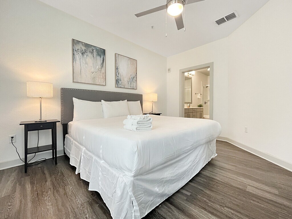 Experience the convenience of living in the Westshore area with this spacious 3-bedroom apartment, just 5 minutes from Tampa International Airport and International Plaza, and 20 minutes to Clearwater and Largo. Situated on the 2nd floor with elevator access, this home offers fountain views and easy access to gated parking and all amenities. Fully furnished, this apartment includes dinnerware, linens, entertainment, and all utilities, ensuring you feel at home from the moment you arrive. Enjoy free Starbucks signature coffee drinks in the office, a large resort-style swimming pool, a full-size fitness center, and a clubhouse with weekly community events. The gated community parking allows up to 2 vehicles. Pet-friendly with a pet spa available. A full in-suite washer and dryer are included. Located close to everything Tampa Bay has to offer, you'll find parks, shopping, and great restaurants just a stone's throw away. Background screening is required prior to occupation, with no fee involved. Felonies of any kind will be denied. Check-in is from 4:00 PM to 8:00 PM, and guests must notify 24 hours in advance if checking in after 6 PM. Background screening is required for every adult (age 18+), and guests must complete screening forms 48 hours prior to check-in. Smoking of any kind, including vaping, is not allowed within the rental or within 20 feet of the building. A $1,500 fee will be charged if smoking is discovered in the rental. Maintenance follows a service route each day and technicians will not enter the property if there is a loose dog. Pets must be put away in a crate or alternative room or bedroom. Cats and dogs are allowed with restrictions, including a restricted breed list. A $300 one-time fee per pet applies, with a 2-pet limit. [SI]