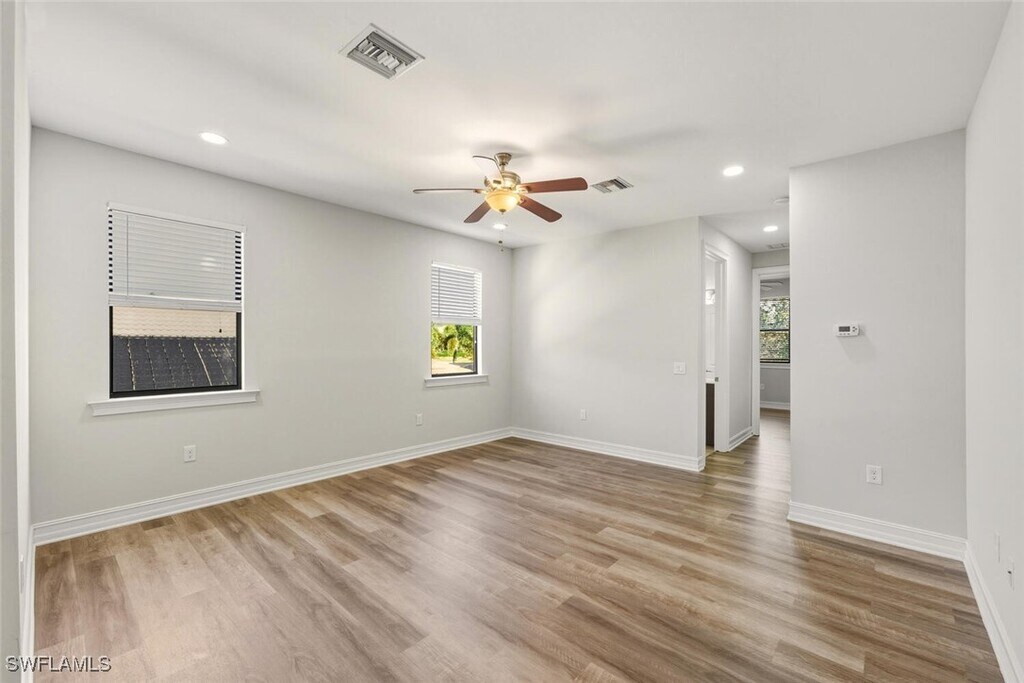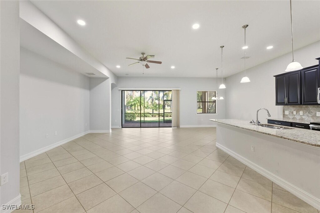 Beautiful 2 story Single Family Home with a beautiful lake view. 3 large bedrooms plus an open den and loft,2.5 bath and two car garage. The outside of the home was just painted. Fully upgraded kitchen with 42 inch dark wood cabinets,granite countertops and back splash,stainless steel appliances and a pantry. Recessed lighting,diagonal tiles downstairs and laminate flooring upstairs. The owner's bath has dual sinks and separate tub and shower. Blinds and fans with lights throughout the house. Gated community with modern large pool,tennis courts,fitness room,clubhouse,bocce court. Close to barefoot beach,coconut point mall,FGCU,airport,shopping,restaurants,etc.