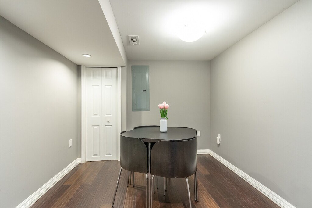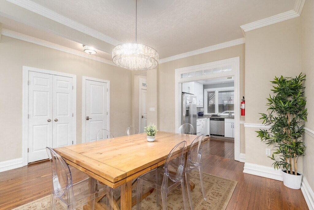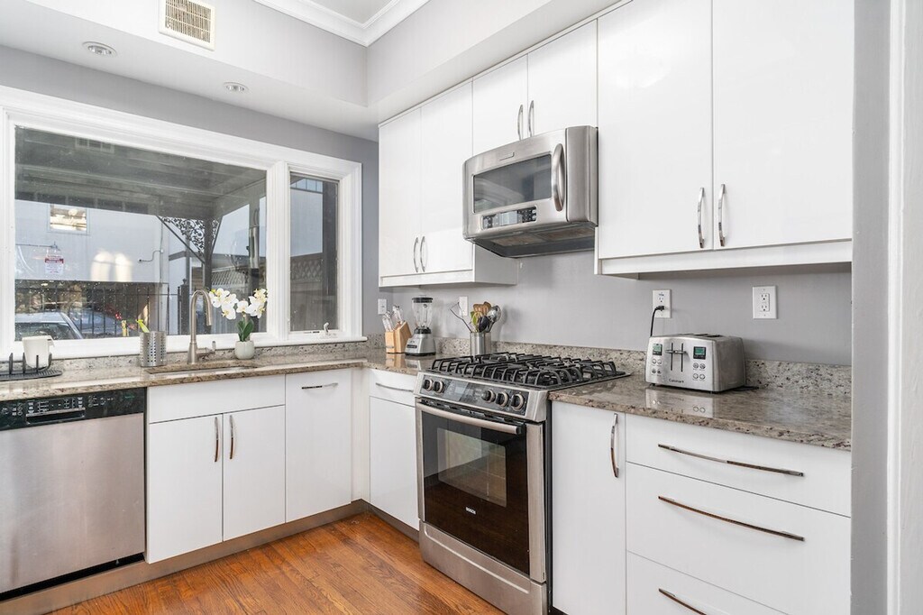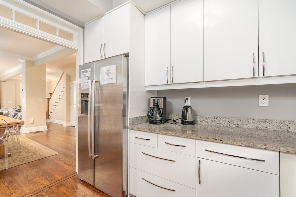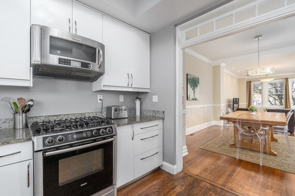 Located within walking distance of Rock Creek Park and right around the corner from a local grocery store and CVS pharmacy, this fully renovated five-bedroom house in the Woodley Park neighborhood of Washington DC is sure to create lovely memories for years to come. The house features three bedrooms on the second floor, two with queen beds and one with a king bed, along with a daybed room with two twin mattresses, making it an ideal choice for traveling families, students, interns, and business professionals coming to DC. Inside, you'll find a full kitchen equipped with a stainless steel refrigerator with ice and water dispensers, a high-end oven/range, a microwave, a dishwasher, a blender, a kettle, a coffee maker, a toaster, cookware, glassware, pots and pans, and a granite countertop. The house also includes a washer and dryer, high-speed Wi-Fi, a DVD/BluRay player with smart apps, Netflix, and HBOGO, a 55' LED Smart TV, and a kitchenette in the lower level. The house is fully air-conditioned for your comfort. The property offers two paid parking spaces in the back of the house for $20 per night or $250 per month plus DC stay tax. A pet fee is $250 per pet per month or $20 per pet per night. Please note that bed linens, blankets, pillows, and towels are not provided for stays over 30 nights. The Woodley Park neighborhood is one of the most sought-after locations for its upscale houses, beautiful streets, and convenience. You do not need a car to get around here since the metro and the bus are about a half a block away, less than a 5-minute walk. You can walk to DuPont Circle, Downtown, the White House, and the Mall. The Zoo is, of course, a block away. There are plenty of restaurants around the corner where you can taste some of the best foods DC has to offer, including The Hot and Juicy, a shrimp and crawfish restaurant, the Lebanese Taverna, Le Pettit Plat, Pizze, Dunkin Donuts, McDonald's, an Indian cuisine, an Afghan Kabab restaurant, and a Chipotle. There is also a convenient grocery store, Manhattan Market, as well as a CVS pharmacy within a block from here. There are no parties, events, pets, or smoking allowed inside the house. Quiet hours are from 9 PM to 9 AM. Only toilet paper should be flushed in the toilet to avoid clogs. The hardwood flooring is original and very expensive to repair, so no sharp heels or stilettos are allowed. Renters must be 25 years or older for insurance purposes. A lockbox code will be provided 2 days before your arrival, along with a welcome letter to familiarize yourself with the home, the neighborhood, and DC. [SI]