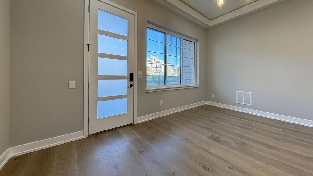 Virtual Tour This stunning, contemporary townhouse offers meticulously designed living space across four thoughtfully laid-out floors, plus a massive finished basement. The home showcases a harmonious blend of modern aesthetics and functional design, immediately apparent upon entry. Elegant hardwood floors in a sophisticated herringbone pattern adorn the main living areas, establishing a luxurious ambiance. The heart of the home is the open-concept kitchen, featuring pristine white cabinetry, stainless steel appliances, and ample counter space, ideal for culinary exploration. Luxurious bathrooms throughout provide a spa-like retreat, boasting marble flooring, subway tile accents, and modern fixtures. Large windows on every level allow natural light to cascade in, illuminating the neutral-toned walls and creating an airy, inviting atmosphere. The vertical design efficiently utilizes the urban lot, with the residential quarters smartly segregated for privacy and comfort. The second floor features two spacious bedrooms, while the entire third floor is dedicated to the exclusive master suite, complete with a walk-in closet and a luxurious master bath, providing a private sanctuary. Finally, the home culminates in a spectacular fourth-floor private rooftop terrace, offering panoramic views of the iconic Philadelphia skyline. This terrace serves as the ultimate space for outdoor relaxation, entertaining guests, or enjoying a morning coffee with a view, all while maintaining a sleek, contemporary profile in its vibrant South Philadelphia neighborhood. Qualifications / General Screening Criteria: • Rental applications must be complete, correct and verified. • Gross monthly income must provable and be at least 3 times rent or tenant must have a housing choice voucher. • Applicants must have a proven history of on-time rental payments not including the COVID-19 emergency period. • Applicants must have a good relevant credit history or tenant must have a housing choice voucher. • Applicants must have no evictions in the last 4 years except during the COVID-19 emergency period.