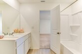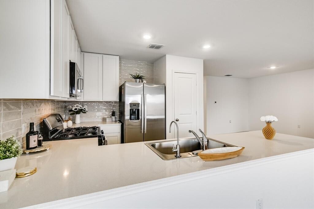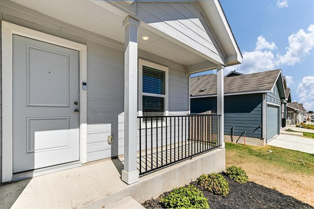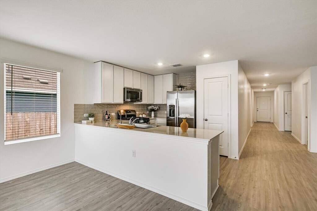 Step into almost-new living with this gorgeous 2024-built one-story home—bright, modern, and packed with upgrades! Enjoy an open-concept layout with 4 bedrooms and 2 full bathrooms, vinyl floors throughout the main areas, and soft carpet in the bedrooms. The stylish kitchen shines with stainless steel appliances, a brand-new subway tile backsplash added after photos, a drinking water filtration system, and a water softener. Refrigerator, washer, and dryer are included—truly move-in ready! Energy efficiency is a standout here: solar panels, double-pane windows, and new blinds help keep electric bills impressively low. The spacious living and dining areas flow beautifully together, creating the perfect setting for relaxing or entertaining. Outside, enjoy a flat backyard, automatic sprinkler system, and no direct back neighbors. The community also features a brand-new pool conveniently close to the home, offering a refreshing perk for residents. Location is another huge plus—this home offers easy access to both I-35 and Toll 130 and is very close to Samsung, making commuting and daily errands a breeze. A nearly new home loaded with comfort, upgrades, and modern style—ready for its next happy tenant!