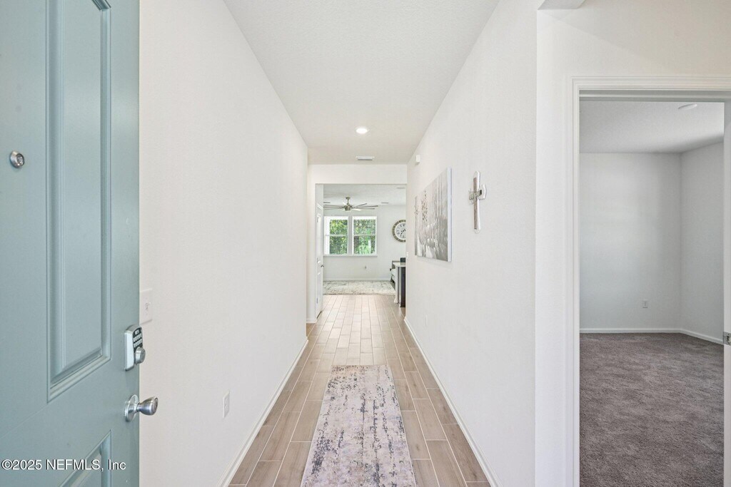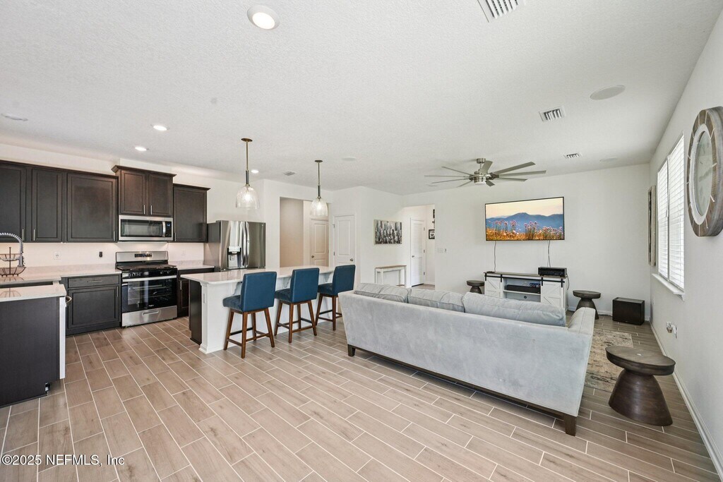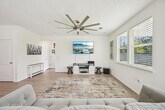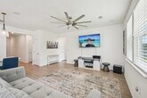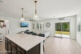 This fantastic home,built in 2023,showcases numerous upgraded features that set it apart. The property includes a spacious 3-car garage with sleek epoxy flooring,complemented by an extra-wide driveway that ensures convenient and easy parking. The interior is light & bright,accentuated by an open floor plan. Wood-look tile flooring extends through the entry,hallways,laundry room,kitchen,dining area,and family room,creating a seamless and modern appearance. The kitchen is equipped with stainless steel appliances,including a range with gas burners,making it ideal for culinary enthusiasts. Quartz countertops and an abundance of cabinets provide ample space for food preparation and storage,perfect for the chef in the family. The primary bathroom offers a large,glass-enclosed shower and a huge walk-in closet. Relax outdoors on the extended covered lanai,which leads to a private rear yardan inviting space for entertaining or unwinding in peace. MLS# 2116337