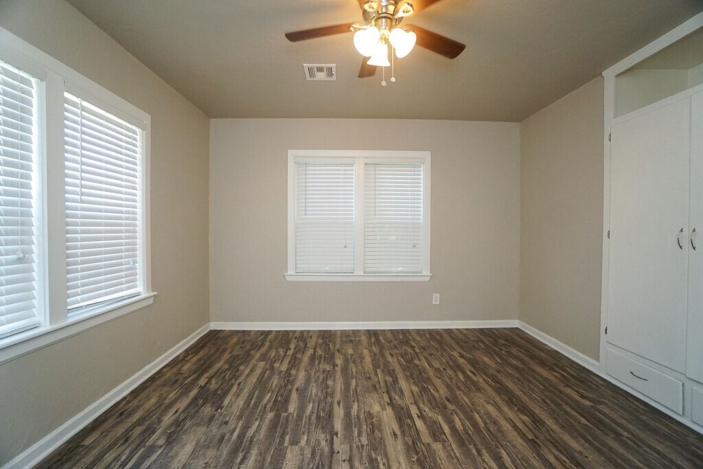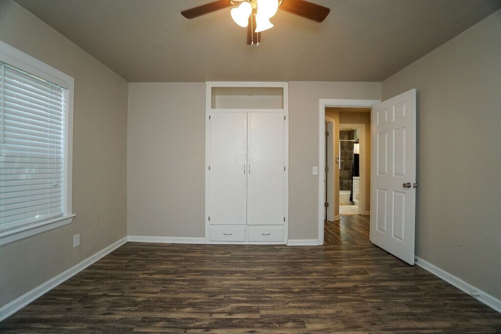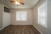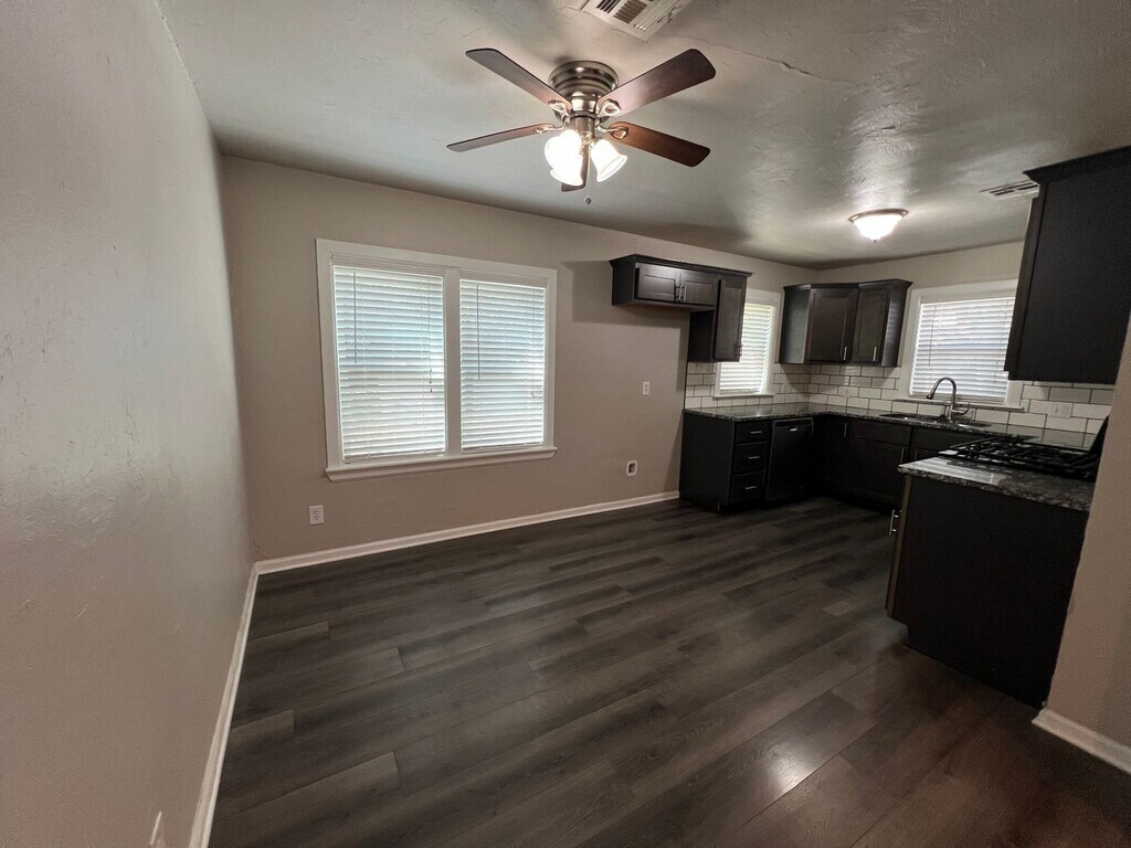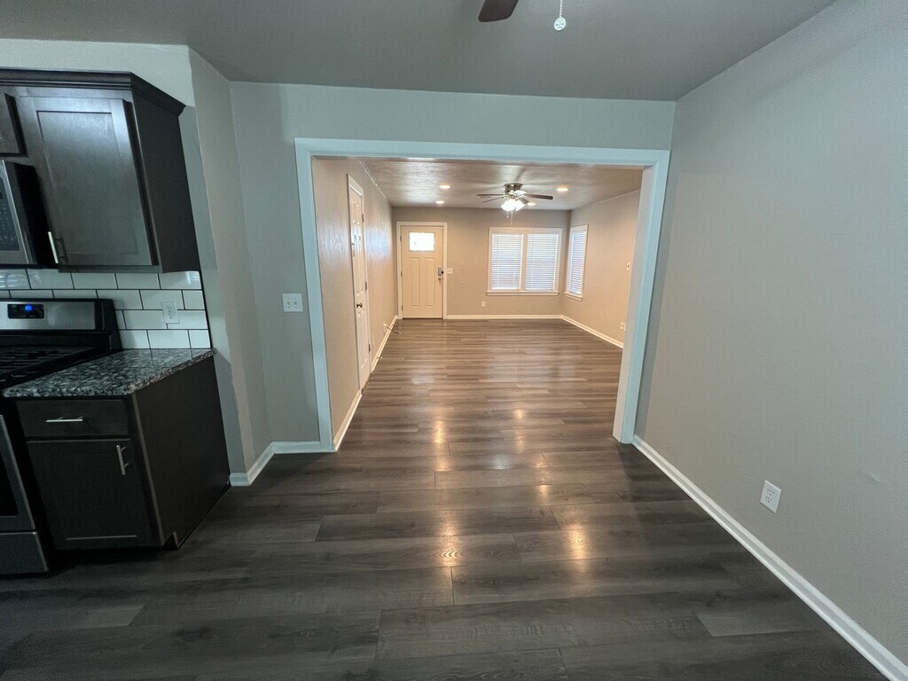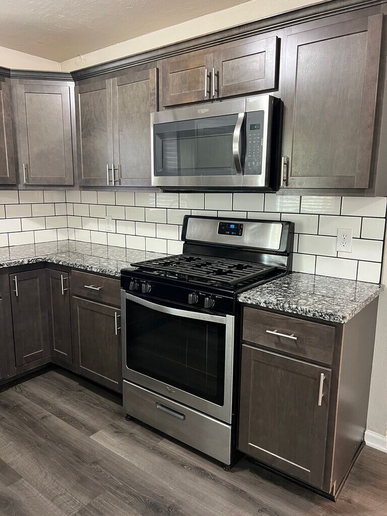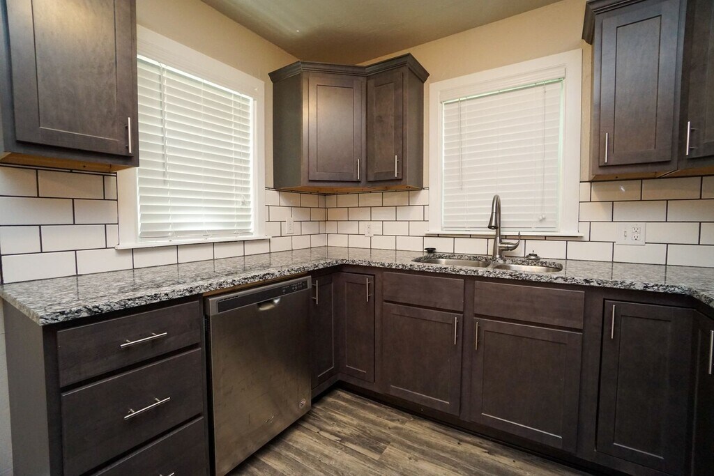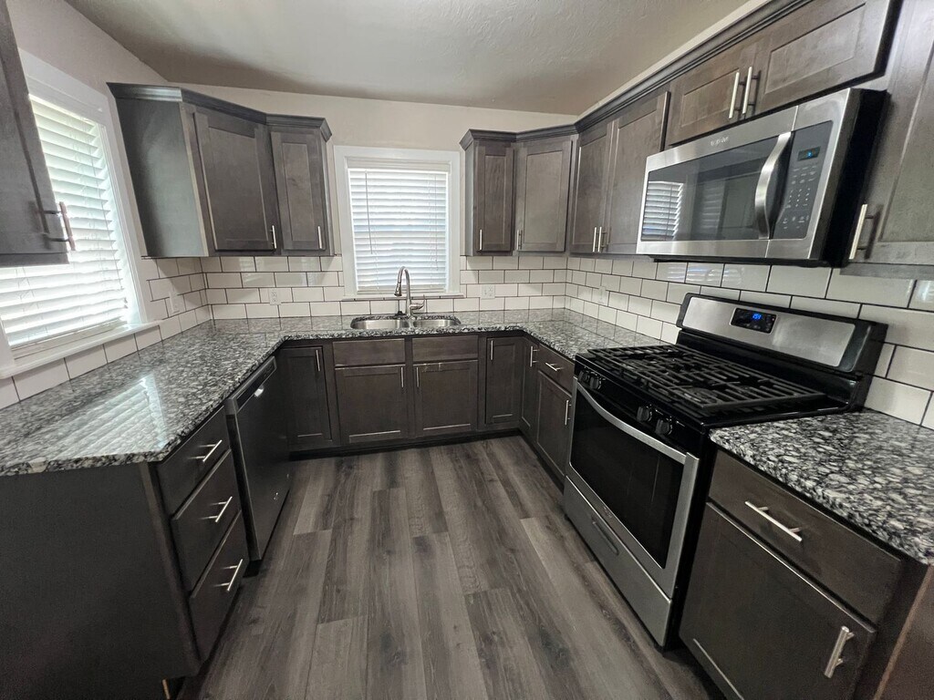 Save $300 off if you move in by November 15, 2025. This beautiful 2 bed, 1 bath home will blow you away with it's updated, contemporary style. The cozy front porch and front door with lovely glass detail invite you in. White woodwork and neutral paint throughout match any color scheme. There is low maintenance wood-look vinyl flooring in most of the home with ceramic tile in the bathroom. The kitchen boasts dark wood cabinets with nickel hardware. There are granite countertops, a subway tile backsplash, and a stainless steel gas range, dishwasher, and built-in microwave. Ceiling fans in both bedrooms, the living room, and dining room help keep the house comfortable. The bathroom features an updated vanity and beautiful tiled tub/shower. Washer and dryer hookups are in the attached 1 car garage with opener. There is also a fenced backyard. Tenant must provide their own refrigerator, washer, and dryer. Applications are only accepted through our website, Security deposit - $1,000 Please visit our website, for information on housing voucher availability. This is a no smoking, no pet property.