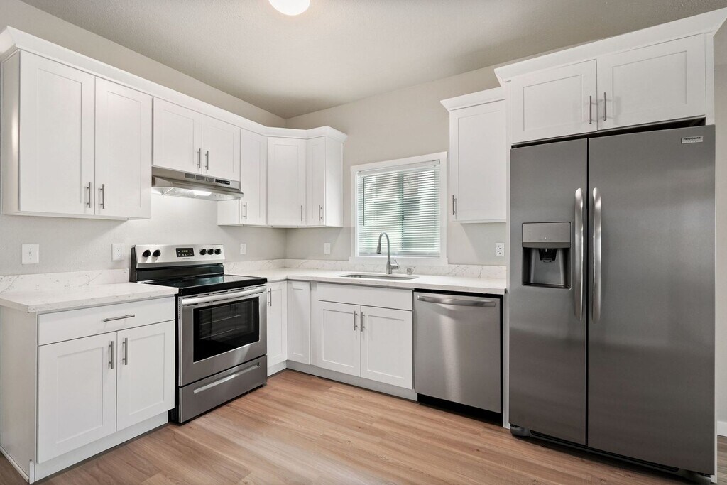 Recently remodeled charming home features 3 bedrooms and 1 bathroom. New vinyl flooring, and new carpet in the bedrooms. Freshly painted. All new kitchen cabinets, stainless steel appliances and washer/dryer in unit. Close to downtown and City bus lines. Off Street Parking for 4 vehicles! This will rent quick! Call today ! First months rent and deposit moves you in!