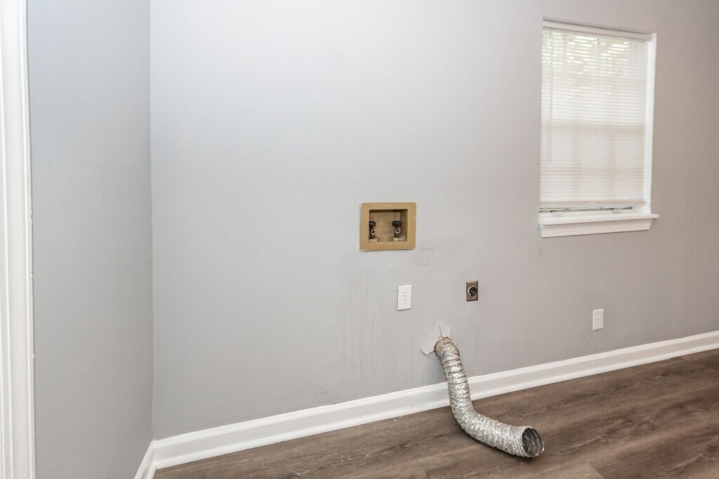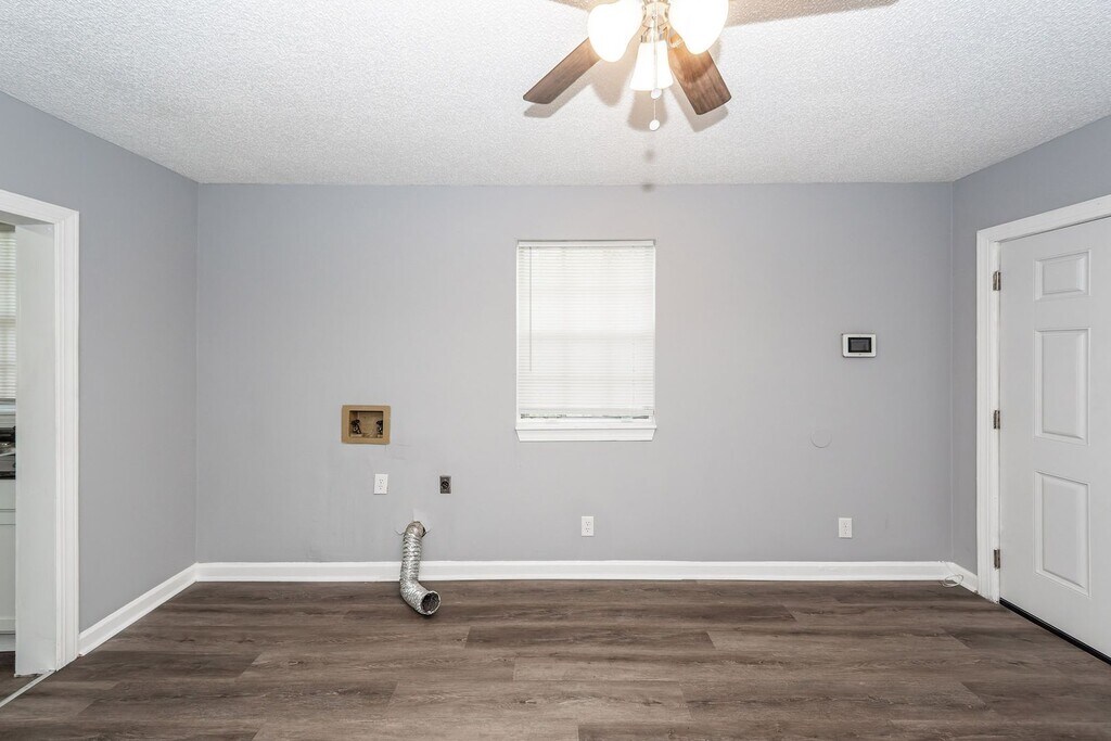 - 1,050 SQFT - Fresh paint through the entire home - Hardwood floors and LVP - Kitchen has ample counter space - Washer and dryer connections in an additional flex space big enough for a expanded laundry room, or office space - Massive backyard perfect for some backyard barbecue's
