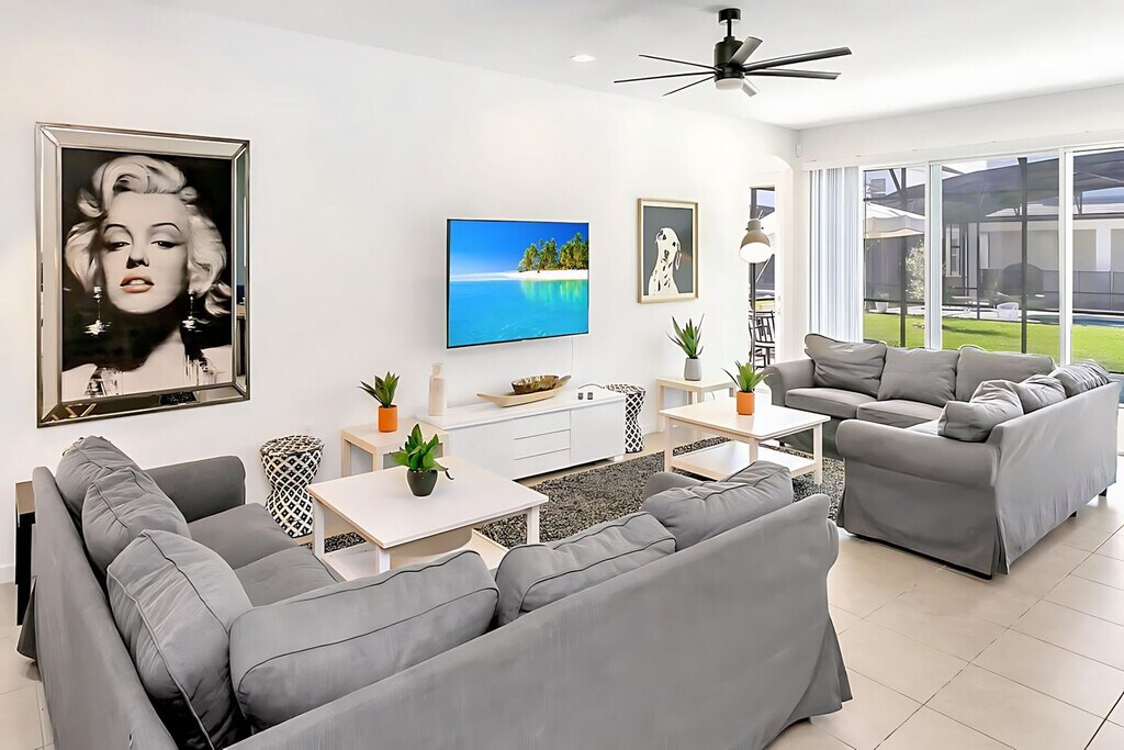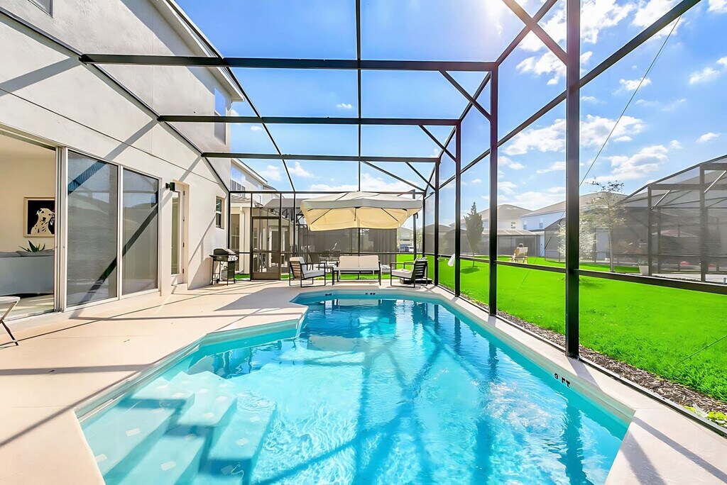 Feel at home in this spacious 10-bedroom home at Sonoma Luxury Resort, perfect for large families or group getaways, hosting up to 20 guests. This retreat features spacious common areas, a private screened-in swimming pool with a removable child safety fence, a spacious patio with sun loungers, outdoor seating and a BBQ grill, and a covered outdoor dining area. Enjoy indoor fun in the garage-converted games room with air hockey, or the second-floor TV lounge. The open-concept living space includes oversized sectional sofas and a 65" Smart TV. The fully equipped chef’s kitchen has two fridge/freezer combos and two dishwashers. For your comfort, there is central air conditioning and high-speed Wi-Fi and Smart TVs throughout, including a 65" in the main living room. Pool heating is available for an additional fee of $35/night, with a minimum stay of 2 nights, and a Pack 'N Play Crib and a Highchair are available for one-time fees of $40 each. Pets up to 70lbs are welcome with a pet fee of $129, and an extra fee of $129 per pet will be collected for more than one pet. Located minutes from Disney, golf courses, shopping, and dining, this home offers the ideal mix of comfort, entertainment, and convenience for an unforgettable Orlando vacation. The home is 15 minutes from Walt Disney World, 25 minutes from Universal Studios, and 30 minutes from Orlando International Airport (MCO). Shopping, golf, restaurants, and local amenities are 5–10 minutes away. Please don’t party or host events or you will be asked to leave with no refund. Please don’t smoke inside the home or you will be charged a $150 fine or your full security deposit. Please don’t check-out late or you’ll be charged a $150 fine per hour past check-out. Please clean up after yourself and any pets; large messes will cost up to one extra cleaning fee. Firearms and weapons are strictly prohibited in the home. Guests have full access to the resort facilities, which features a luxury Clubhouse with a lounge, a large resort style swimming pool with poolside loungers, a jacuzzi, a fitness facility, and walking/jogging trails. Free driveway parking is available, and extra parking is available at the clubhouse. [SI]