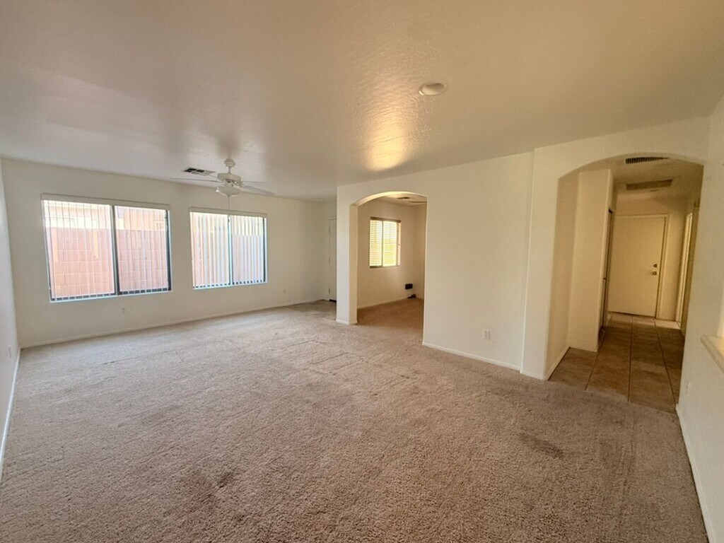 This 3 bedroom, 2 bathroom Avondale home with a bonus room offers flexible living space and a backyard designed for Arizona living. The additional room is perfect for a home office, den, playroom, or guest space. Inside you'll find an open-concept living and dining area with plenty of natural light. The kitchen features stainless steel appliances, abundant cabinet storage, a center island, and great flow for entertaining or everyday living. Tile flooring runs through the main traffic areas for easy maintenance, with carpet in the living room and bedrooms. Step outside to enjoy a private backyard with a refreshing pool and covered patio, ideal for relaxing or hosting friends and family. The property backs directly to a large greenbelt and park area, offering beautiful open views and extra outdoor space just beyond your yard. Additional features include: • 2-car garage with built-in storage cabinets • Security system installed (tenant may activate service) • Low-maintenance desert landscaping • Covered patio for shaded outdoor living Conveniently located near parks, shopping, dining, and easy freeway access, making commuting around the West Valley simple. Open House: Sunday 3/15 from 4:00–4:30 PM Homes with pools and greenbelt views like this are rare — schedule a showing today.